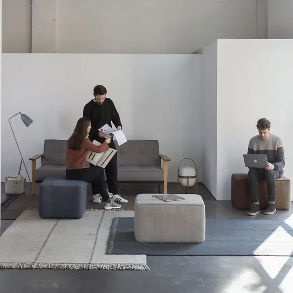 The Nanimarquina Mia Rug is an artisanal piece made by joining three individually dyed pieces of wool to achieve that worn and lived in aesthetic. The two seams are visible, yet complement the rug by adding texture and variety as well as a handmade element.