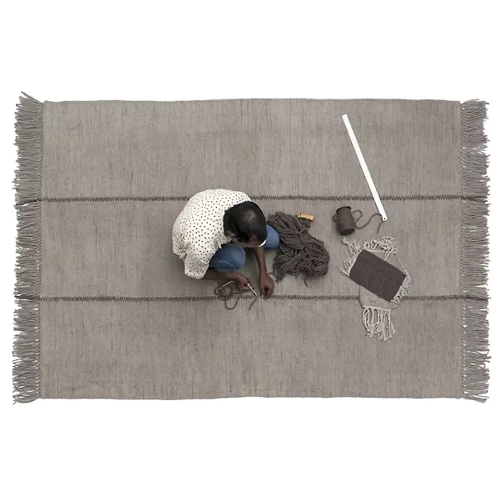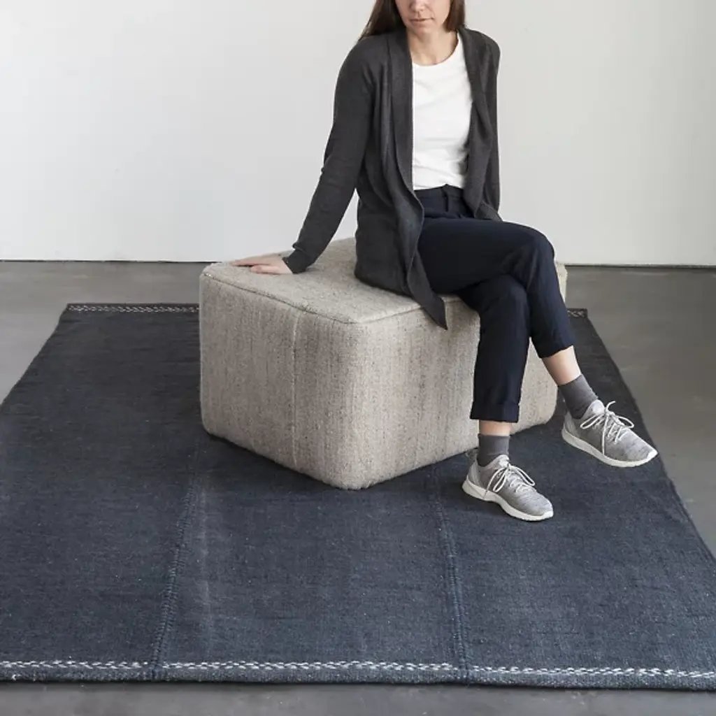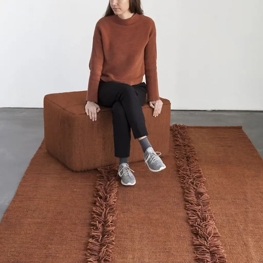 The Nanimarquina Mia Rug is an artisanal piece made by joining three individually dyed pieces of wool to achieve that worn and lived in aesthetic. The two seams are visible, yet complement the rug by adding texture and variety as well as a handmade element.
