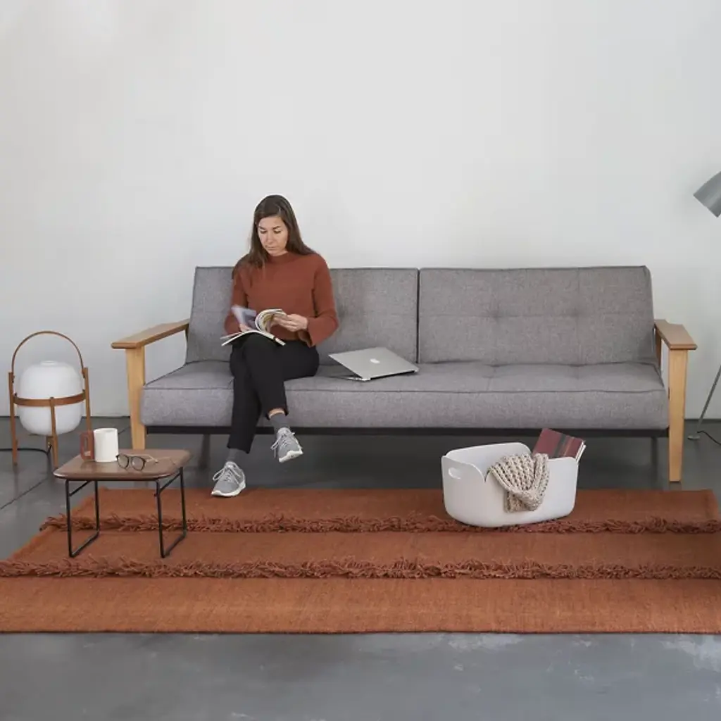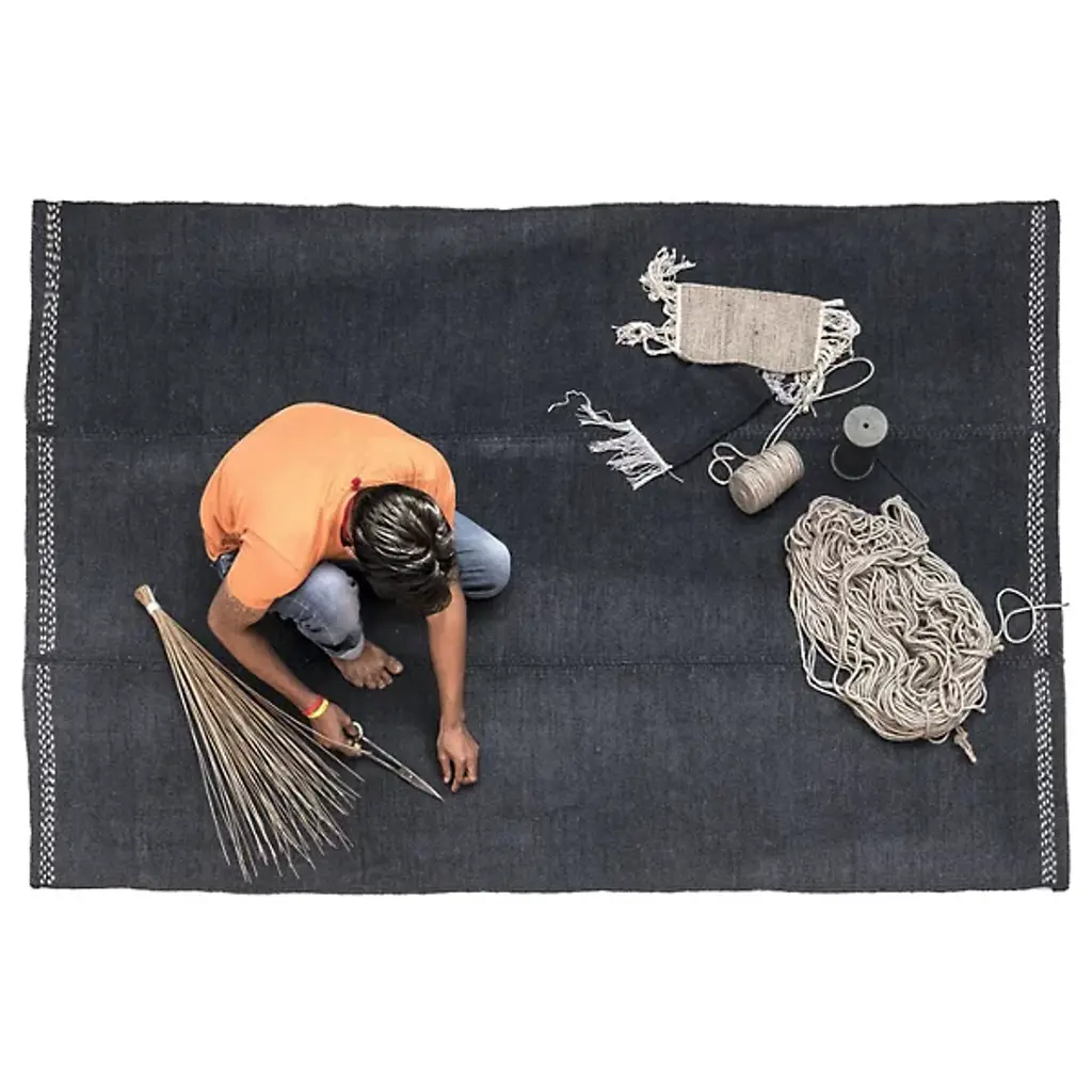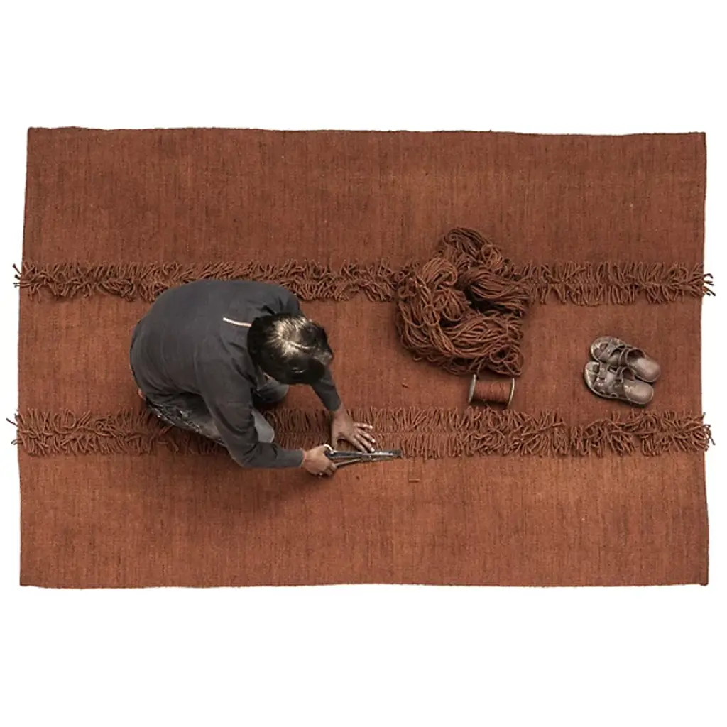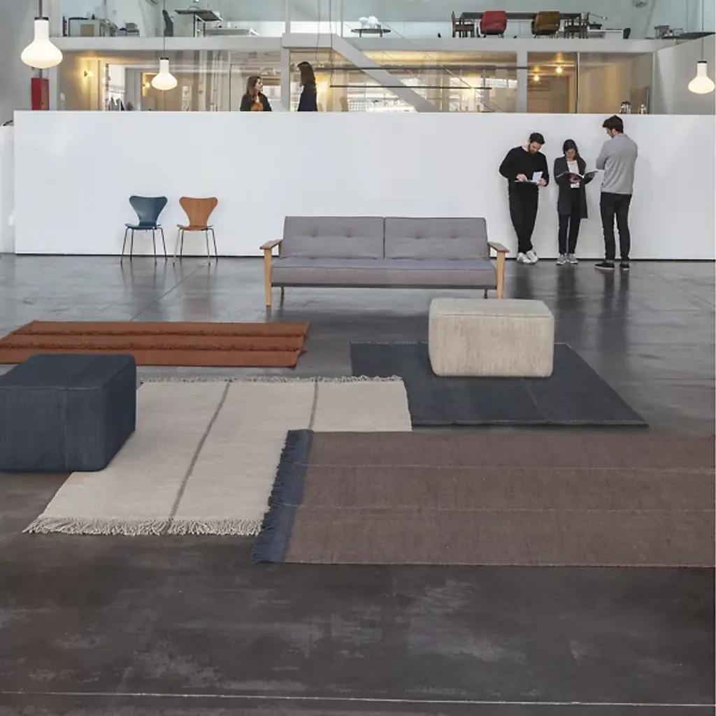 The Nanimarquina Mia Rug is an artisanal piece made by joining three individually dyed pieces of wool to achieve that worn and lived in aesthetic. The two seams are visible, yet complement the rug by adding texture and variety as well as a handmade element.
