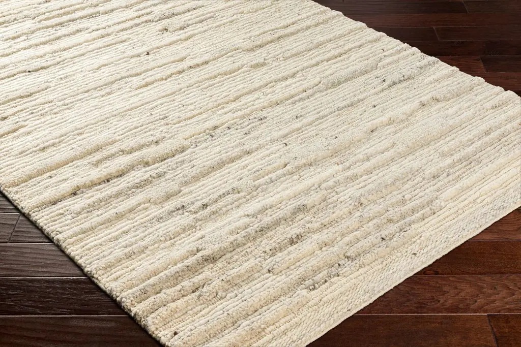 Cut-and-loop construction gives this handwoven rug its intriguing high-low texture, accentuated by the subtle tonal variations. The medium-pile rug is made of New Zealand wool, prized for both its softness and its durability. A rug pad is recommended to help prevent slipping and extend the life of the rug.
