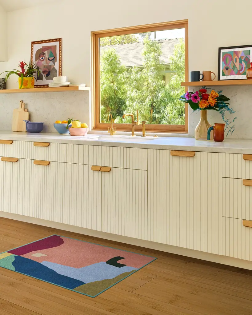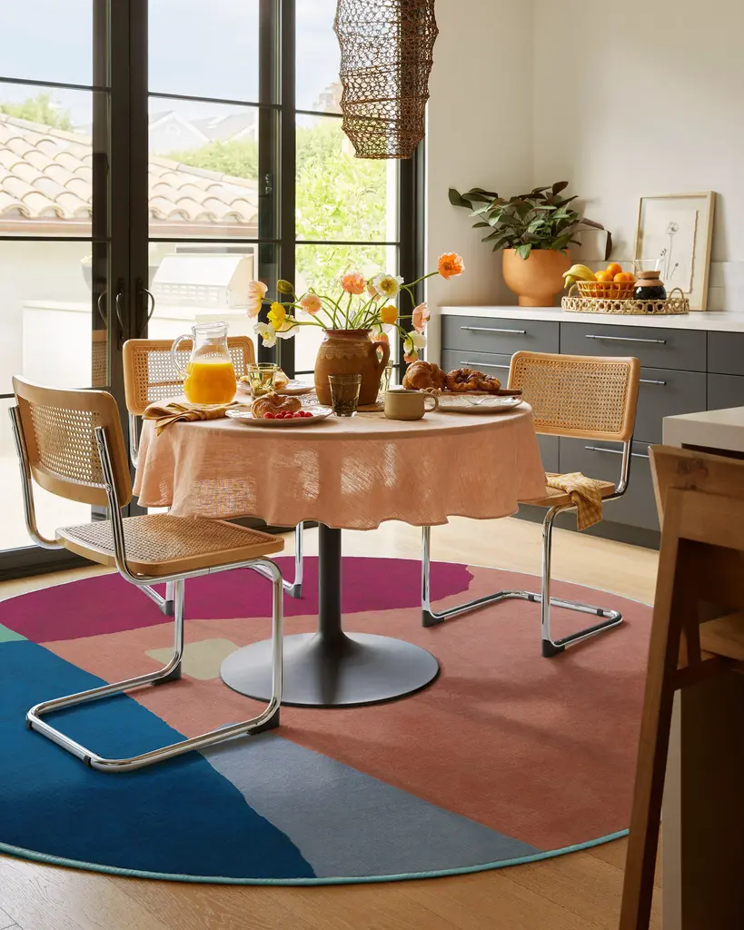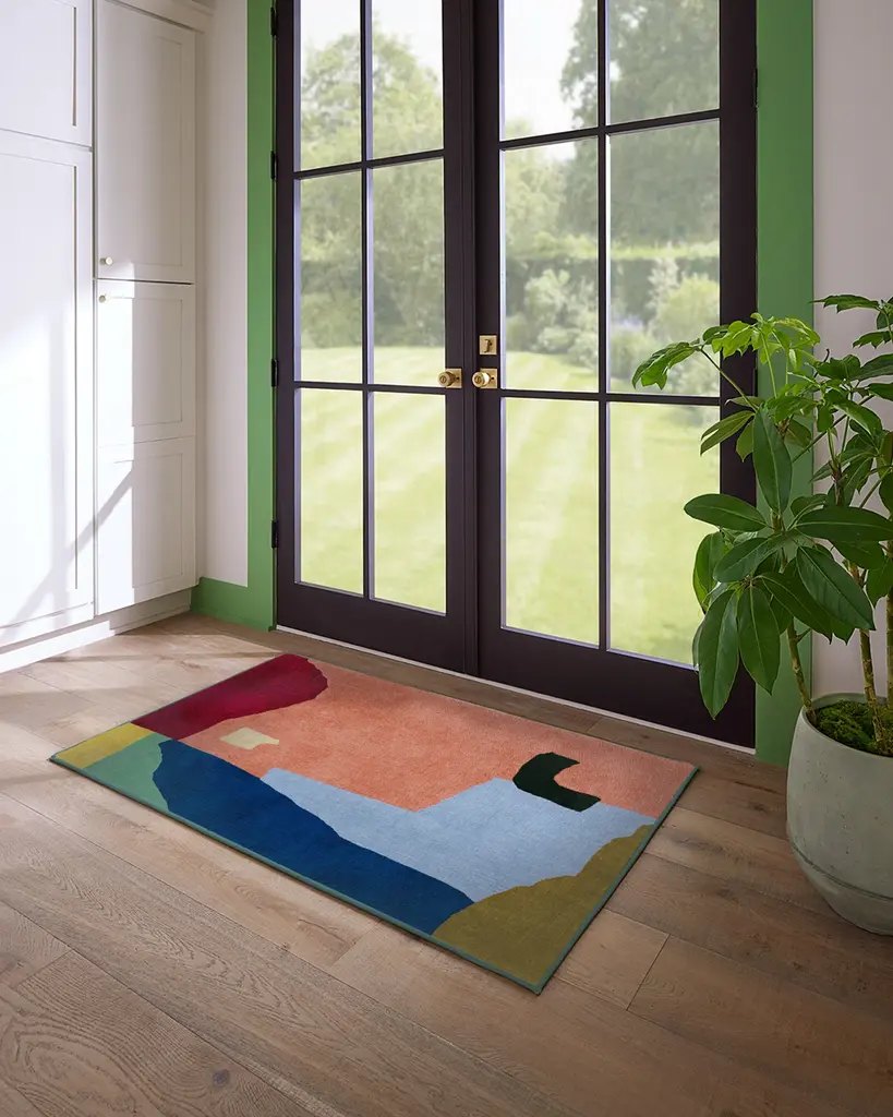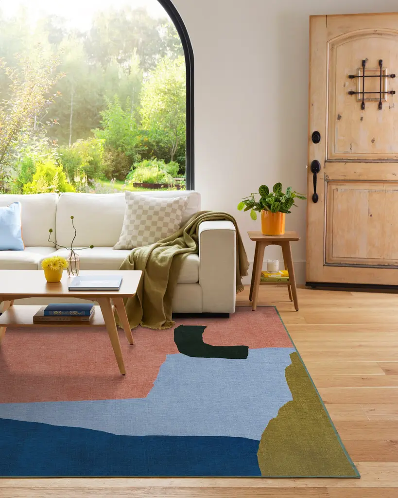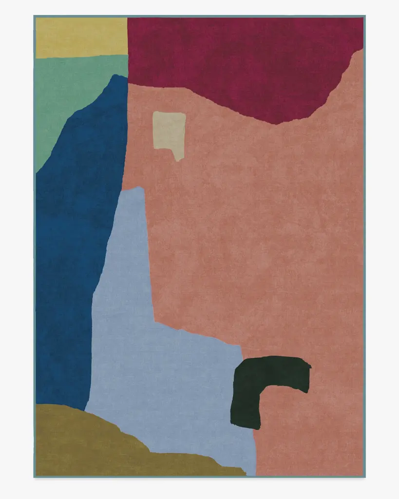 Set the tone for creative color with our Mica Rug in PANTONE™ Cerise. With a kaleidoscope of playful hues and a touch of deep black, this modern design features a colorful collage of abstract-shaped puzzle pieces. Pops of light turquoise, dusty pink, mossy green, and soft chartreuse surround the pink-hued Pantone Cerise. Water-resistant, stain-resistant, and machine-washable. Rug colors may vary slightly according to your device and the lighting in your space.