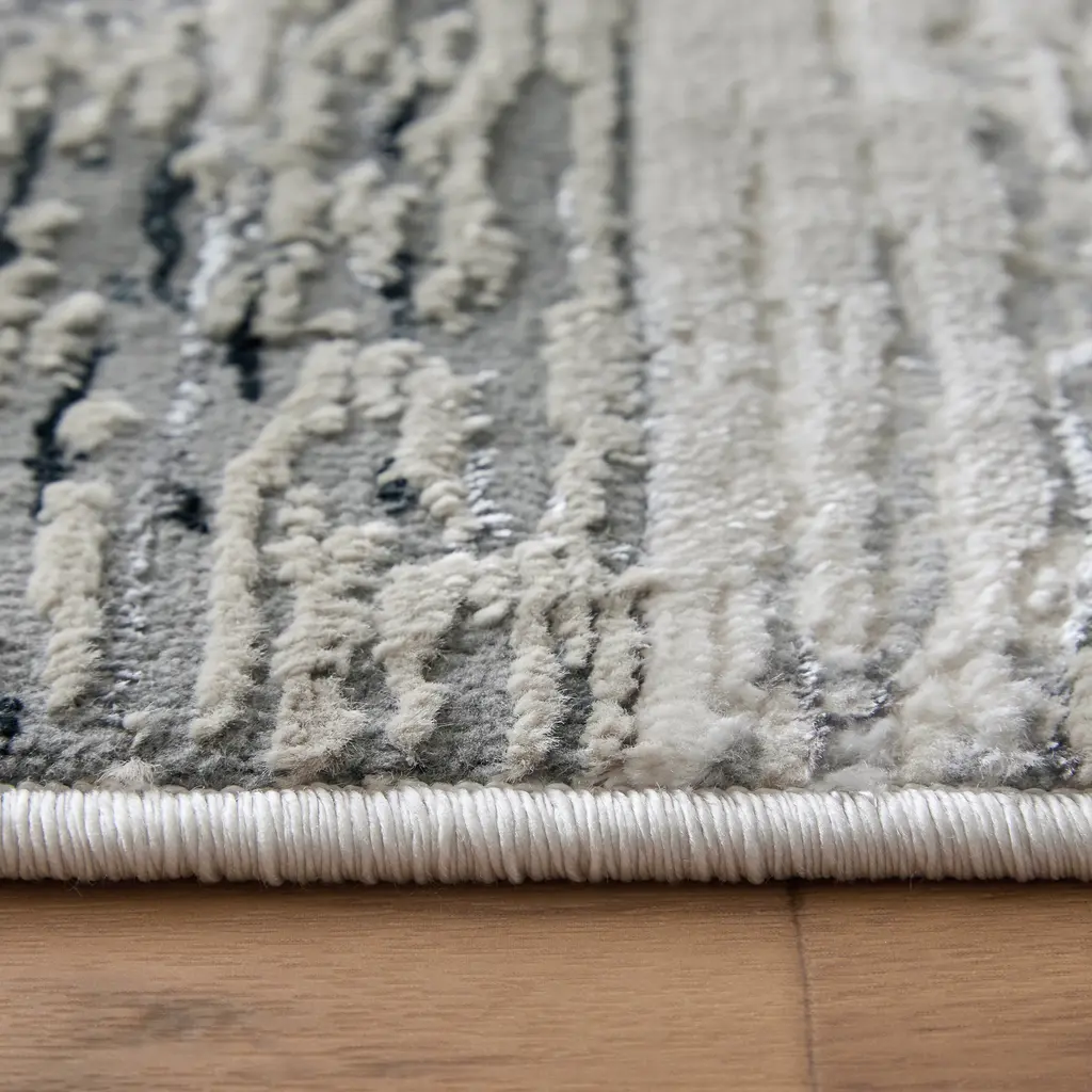 Collection: Micah Colors: Black, Silver Gray, Gray Construction: Machine Made Material: Face: Polyester, Polypropylene / Warp: Jute Pile: Low Pile Pile Height: 0.39" Styles: Contemporary,Industrial Backing: Jute Made In: Turkey Thickness: 0.39" Price Range: $$$$$ (Affordable)