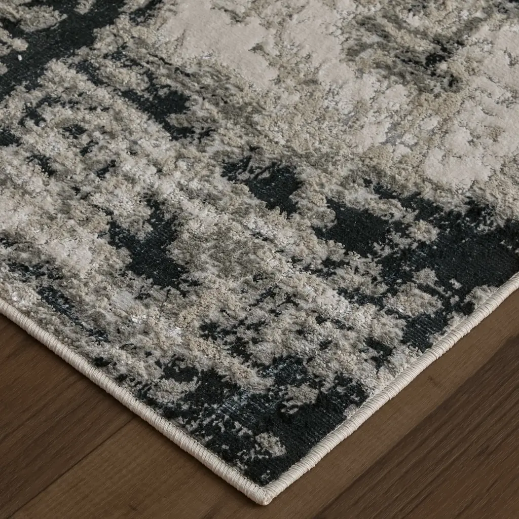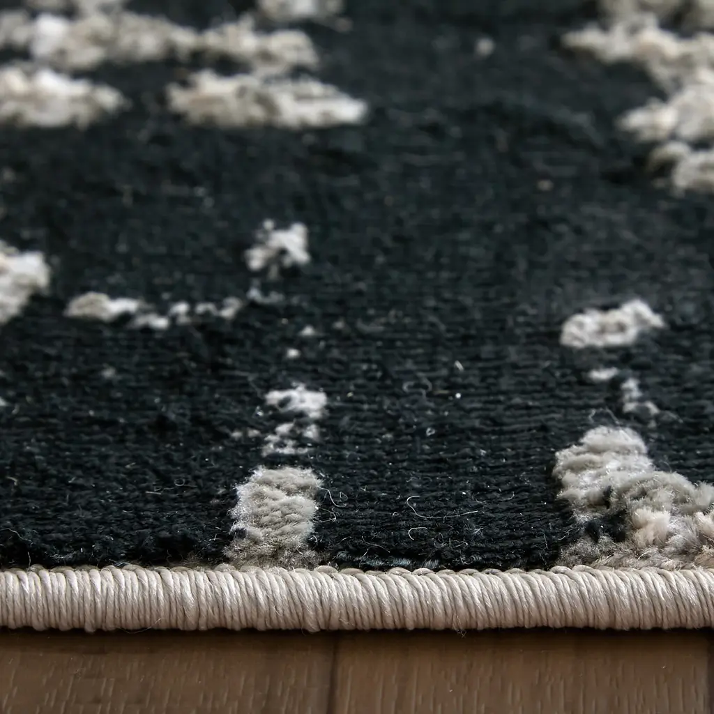 Collection: Micah Colors: Black, White, Gray Construction: Machine Made Material: Face: Polyester, Polypropylene / Warp: Jute Pile: Low Pile Pile Height: 0.39" Styles: Contemporary,Industrial Backing: Jute Made In: Turkey Thickness: 0.39" Price Range: $$$$$ (Affordable)