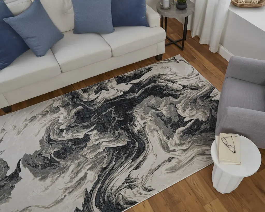 Micah Modern Abstract - Ivory/black/taupe Area Rug - 12' X 15' Rectangle