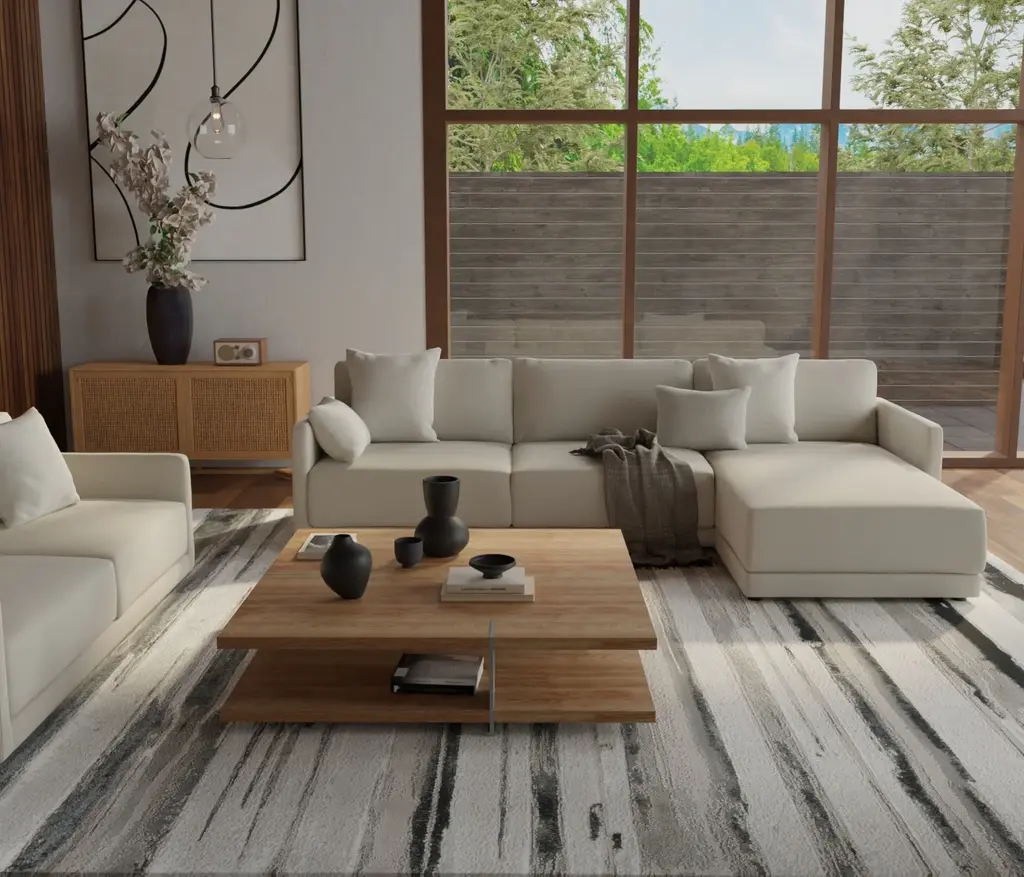 Collection: Micah Colors: Silver Gray, Gray, Black Construction: Machine Made Material: Face: Polyester, Polypropylene / Warp: Jute Pile: Low Pile Pile Height: 0.39" Styles: Contemporary,Industrial Backing: Jute Made In: Turkey Thickness: 0.39" Price Range: $$$$$ (Affordable)