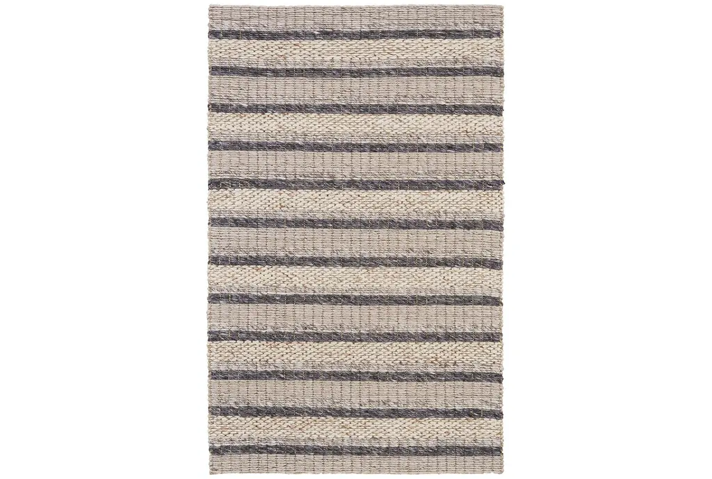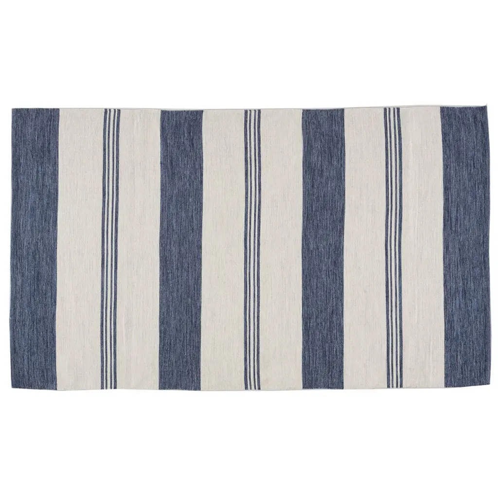 This rug features ivory, natural, and rich blue hues of jute and cotton. This simple, classic look complements a variety of beach- and ocean-themed styles, while also suiting farmhouse and traditional designs.