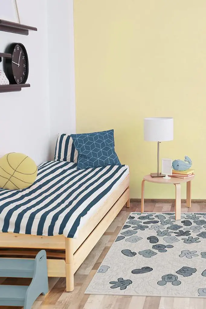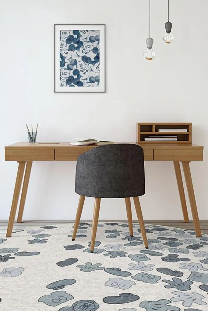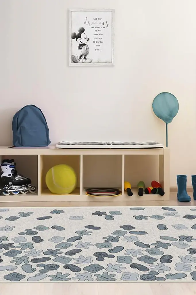 Mickey Mouse takes the center stage in our Mickey All Over Slate Blue Rug. Inspired by our best-selling Prisma Rug collection, this geometric motif features a splattering of Mickey's signature icons, ears, gloves, pants, and shoes in soft hues of slate blue and neutral grey on pearl. This Disney-themed rug is every bit as charming as Mickey himself and will bring a modern touch to your home.