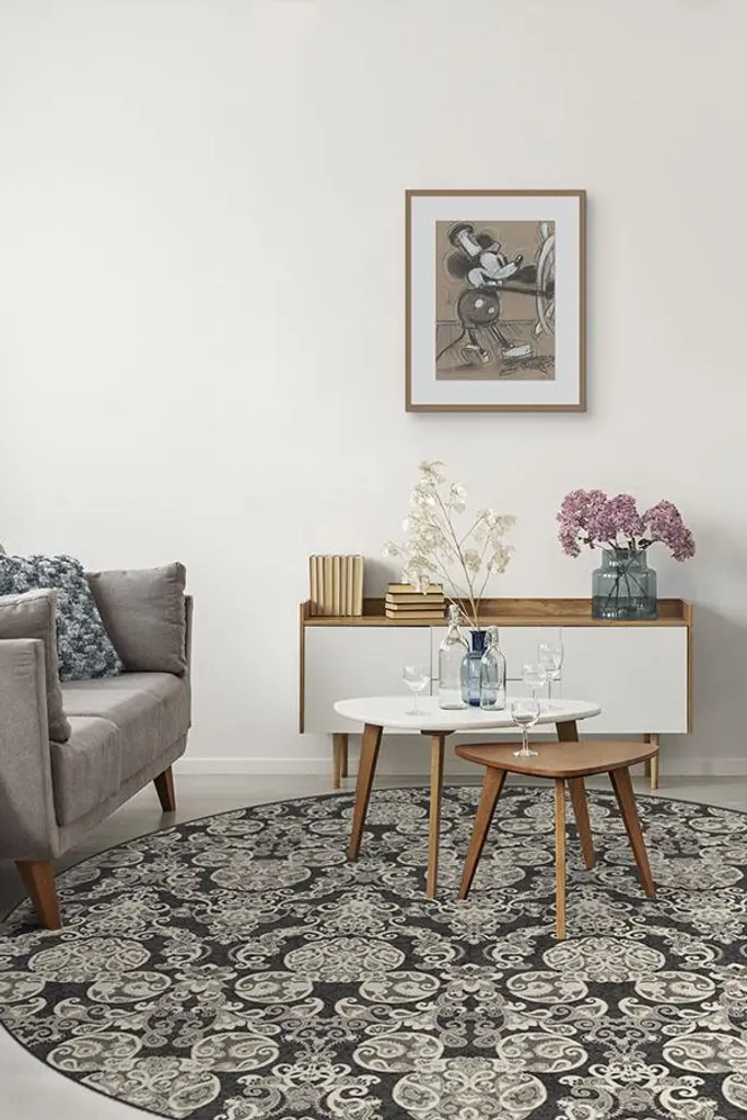 Mickey Damask Charcoal Rug