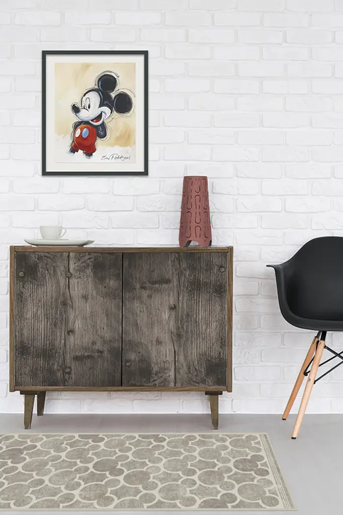 Classic trellis rug motif meets Disney magic with our Mickey Trellis Ash Grey Rug. This allover Mickey Mouse design is rendered in go-anywhere hues of ash grey and mascarpone white with a slightly distressed texture. Both modern and charming, this rug is thoughtfully created for Mickey Mouse fans of all ages.