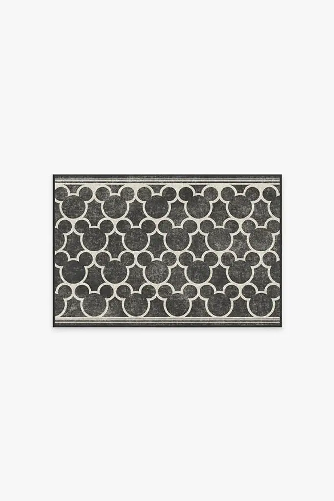 Our fan-favorite Soraya Trellis Rug gets a Disney spin with our Mickey Trellis Black Rug. Tinted in mascarpone white on a slightly distressed gunmetal black background, this rug features repeated outlines of Mickey Mouse's head. A simple yet sophisticated look that's perfect for any room in your house.