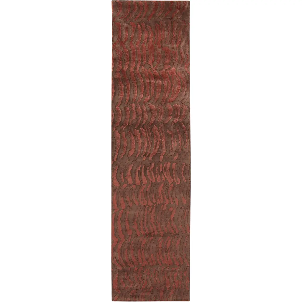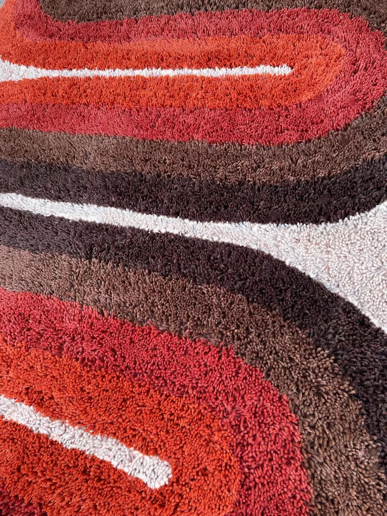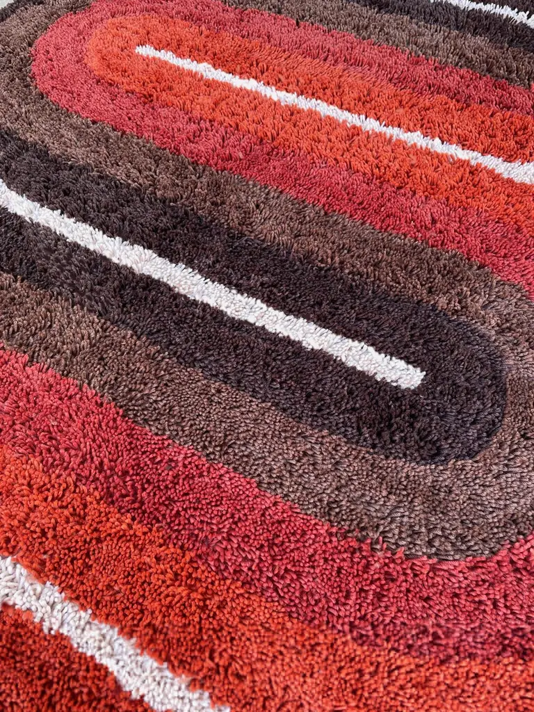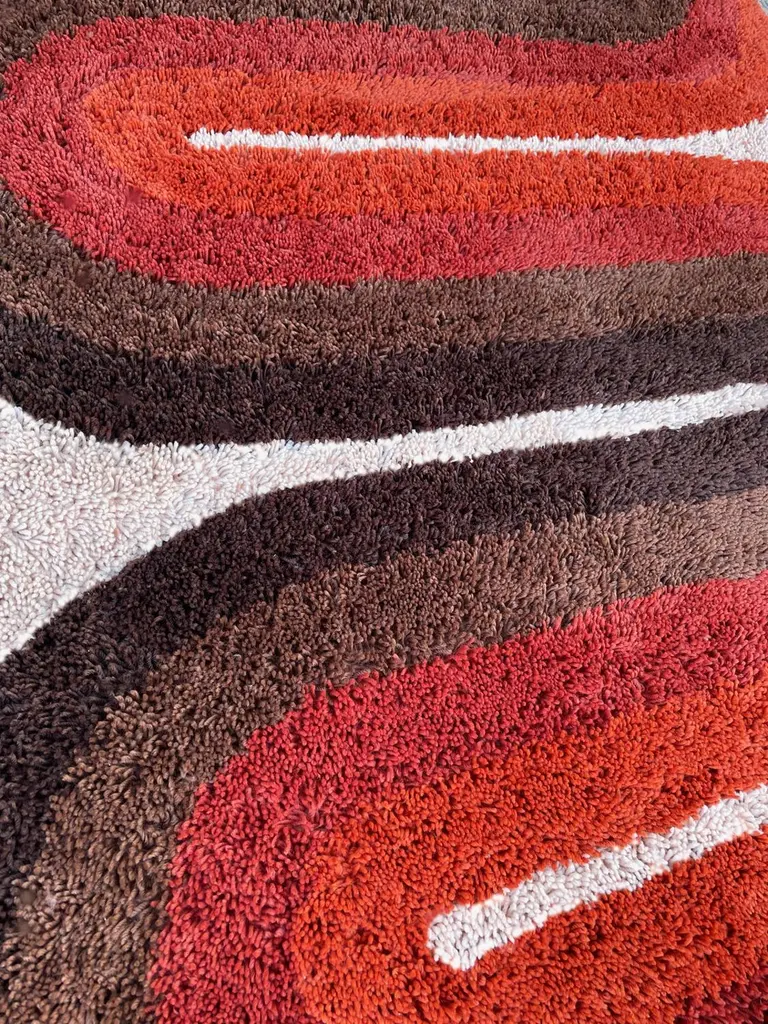Mid-Century Danish Style Rya Area Shag Rug In Red & Orange Modern Wave Design