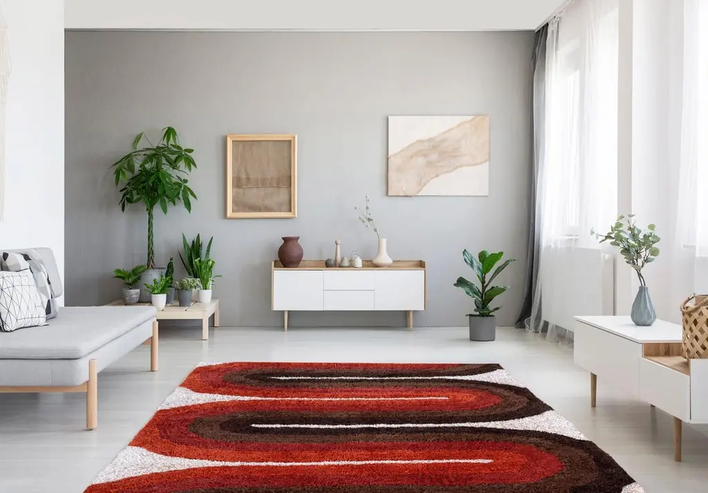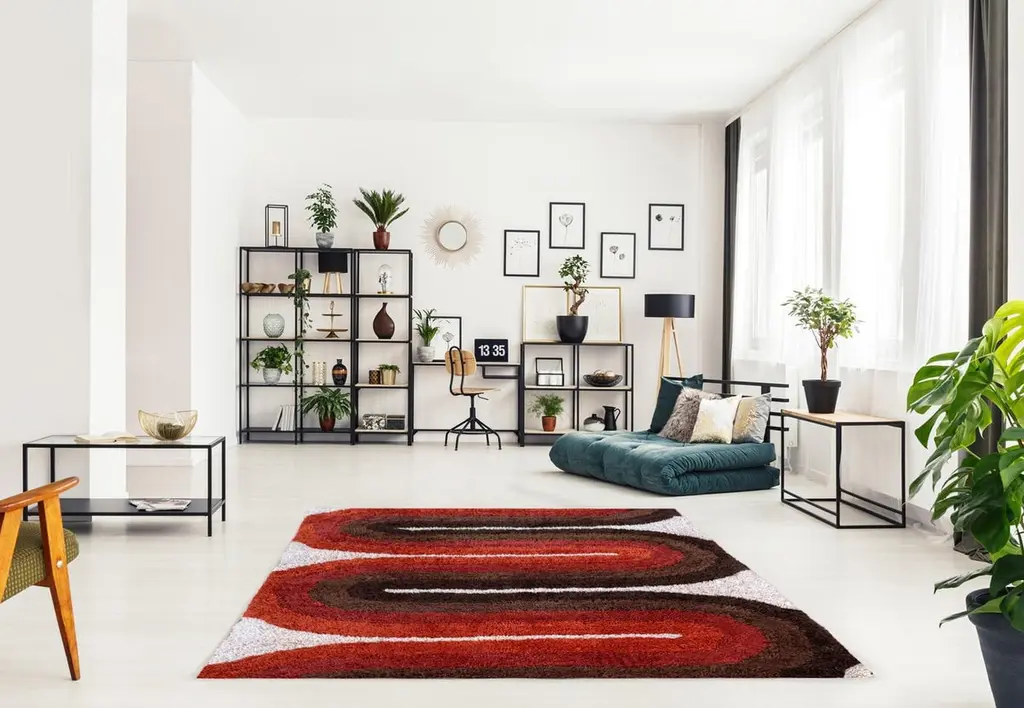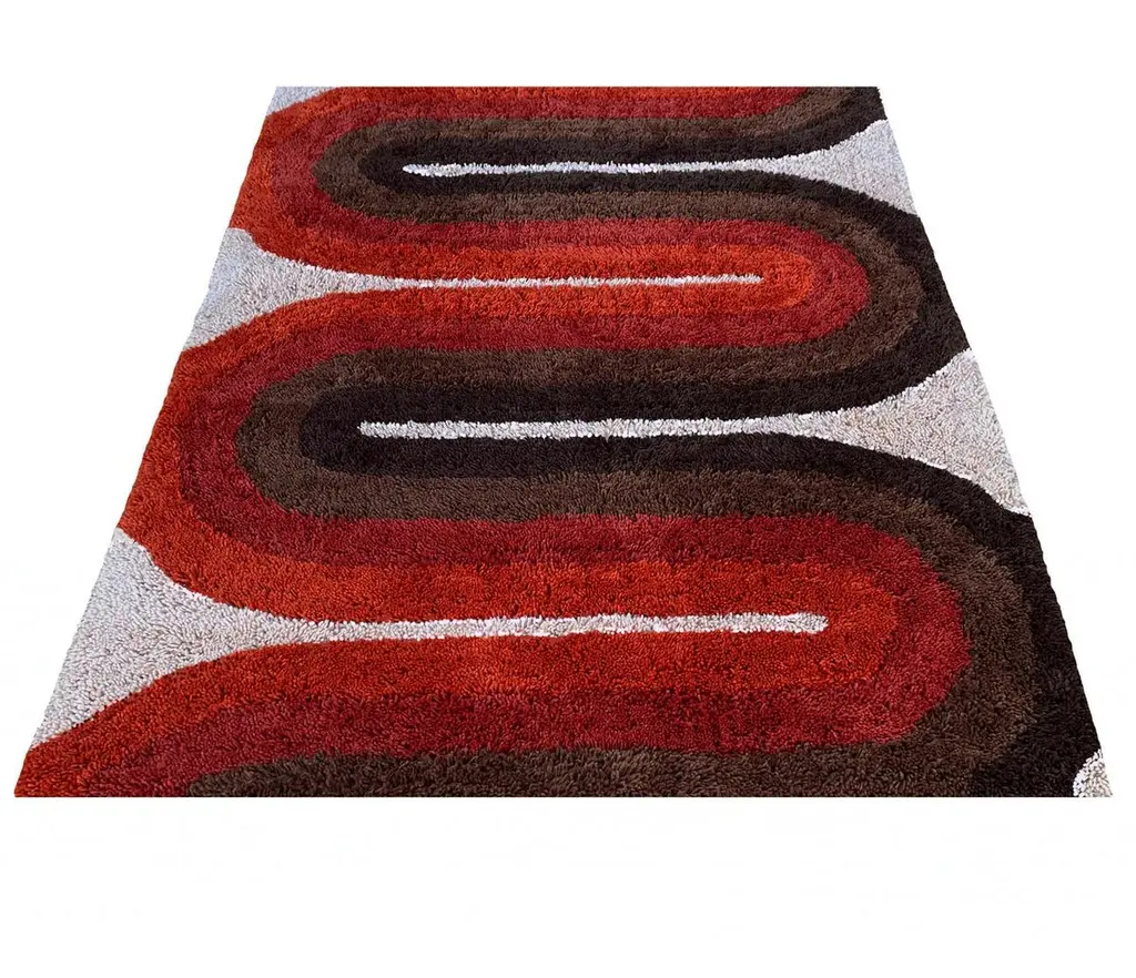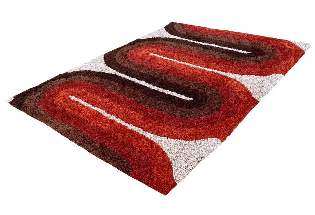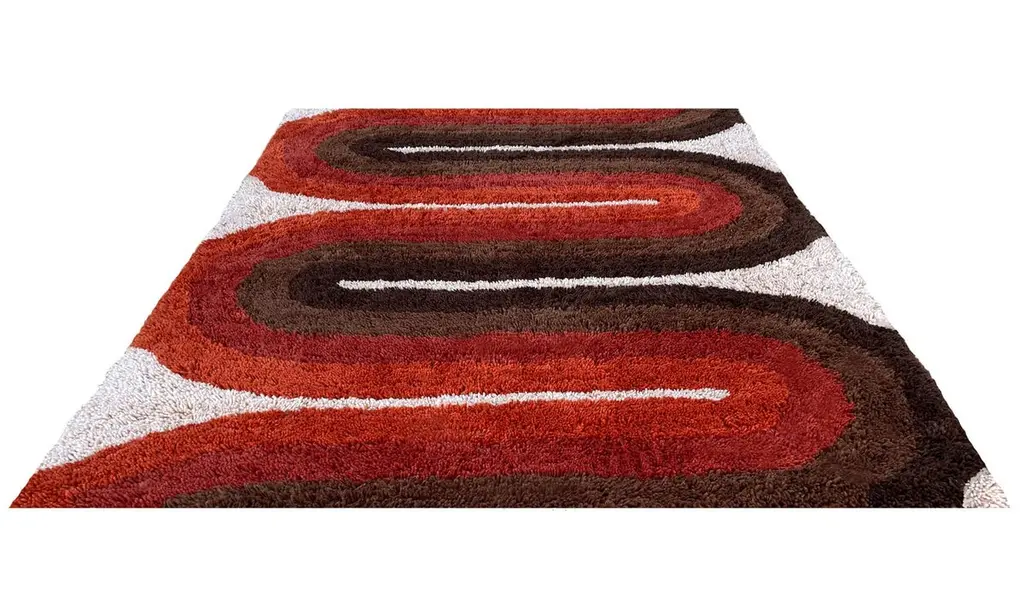 We are proud to offer these brand new, finely crafted, high quality designer shag rugs. These are truly inspired by the Classic Scandinavian rug designs of the 1950’s and 1960’s. The entire look and feel were made to bring you back in time, from the long generous pile, to the period correct color palettes. These designs will surely add that extra pizzaz to your Mid-Century Modern or contemporary home.Size- 5 x 7 (feet) actual 62” x 84” (inches)Material- AcrylicPile length- 1.35 InchesStyle- Mid-Century ModernCountry of origin- IndiaColor- Cream, Red, orange, dark brown, light brown, toffee.