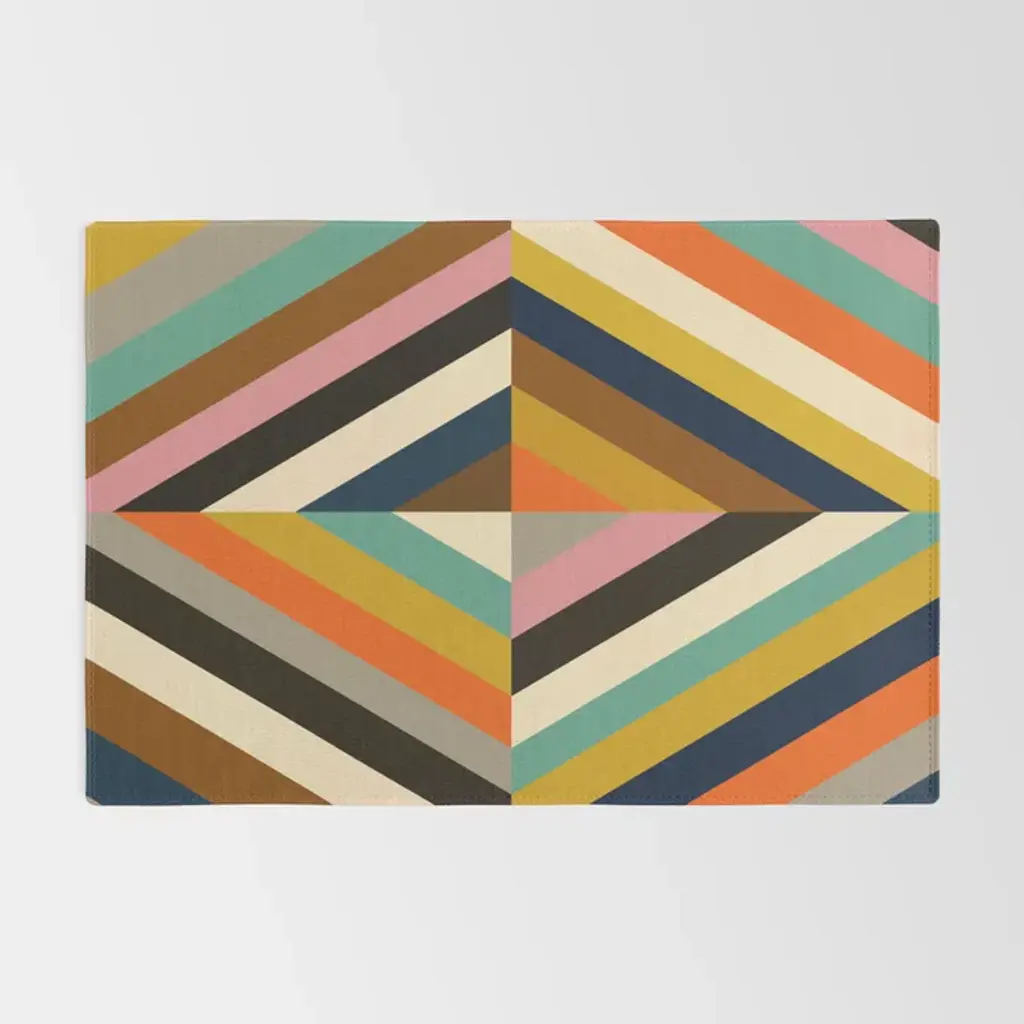 Mid Century Geometric Pattern Technicolor Diamond Rug