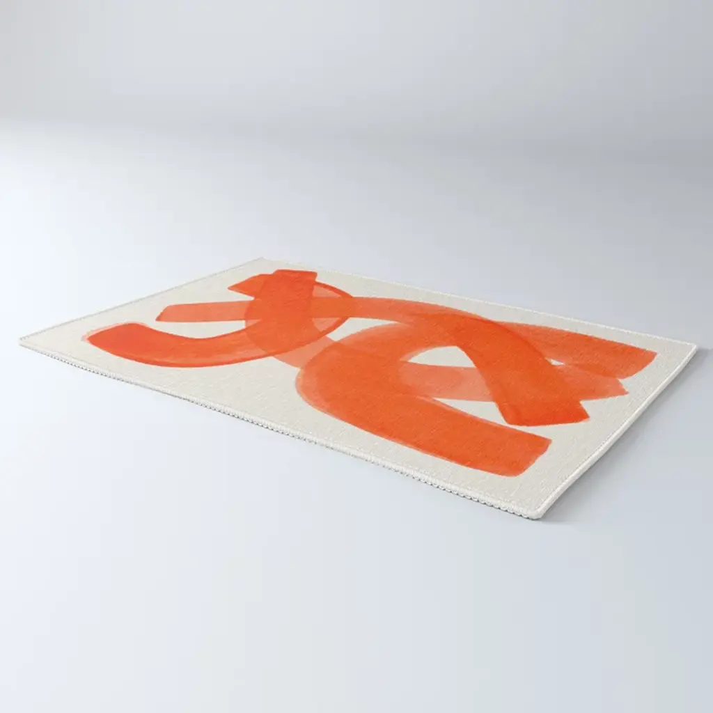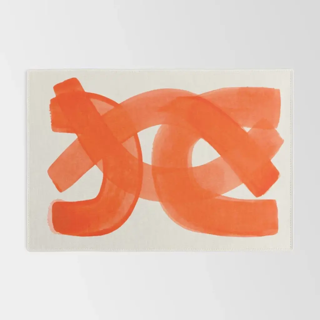 Mid Century Modern Abstract Painting Orange Watercolor Brush Strokes Rug