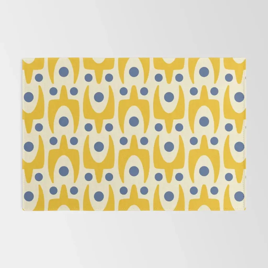 Mid Century Modern Abstract Pattern 641 Googie Yellow And Blue Rug