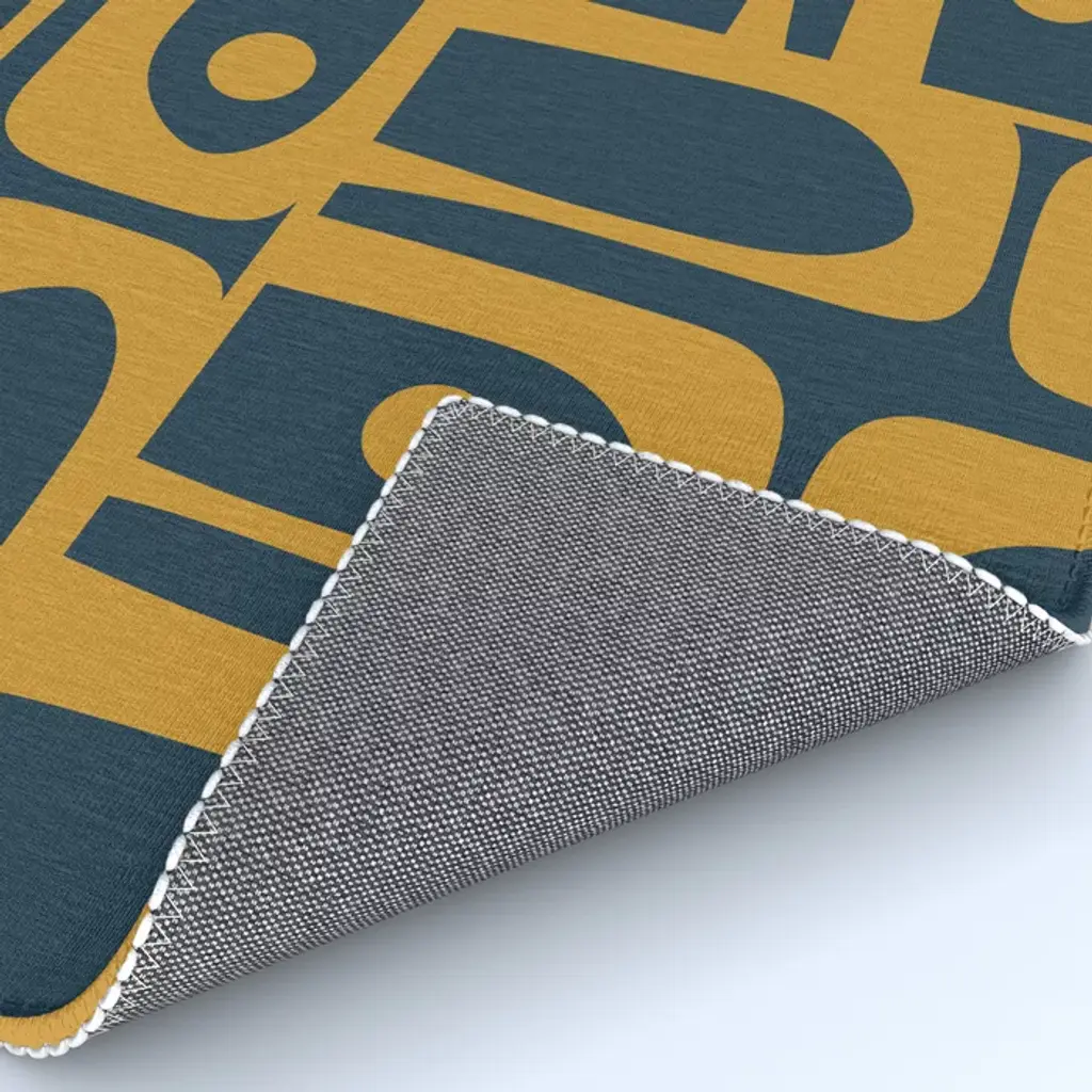 Mid Century Modern Abstract Piquet Multi Pattern In Dark Mustard And Navy Blue Rug