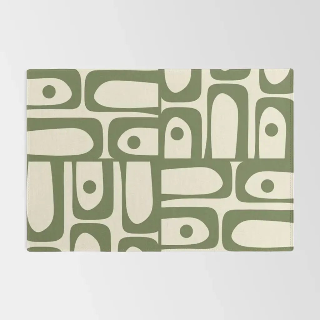 Mid Century Modern Abstract Piquet Pattern In Olive Green And Cream Rug