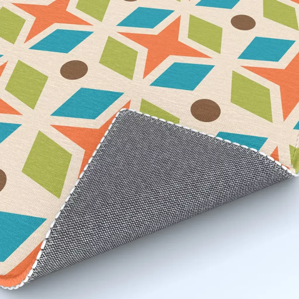 Mid Century Modern Abstract Star Dot Pattern 441 Orange Brown Turquoise Chartreuse Rug