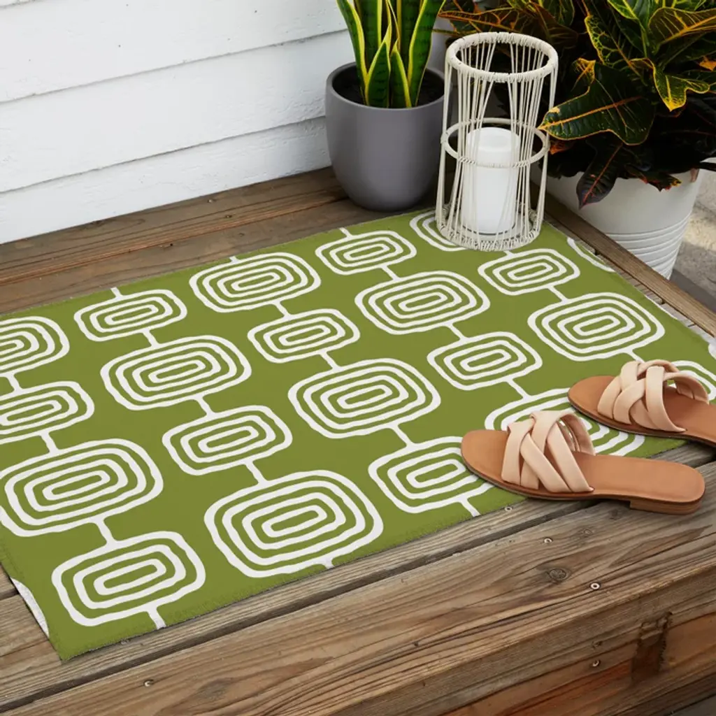 Mid Century Modern Atomic Rings Pattern Mid Mod Olive Green Outdoor Rug