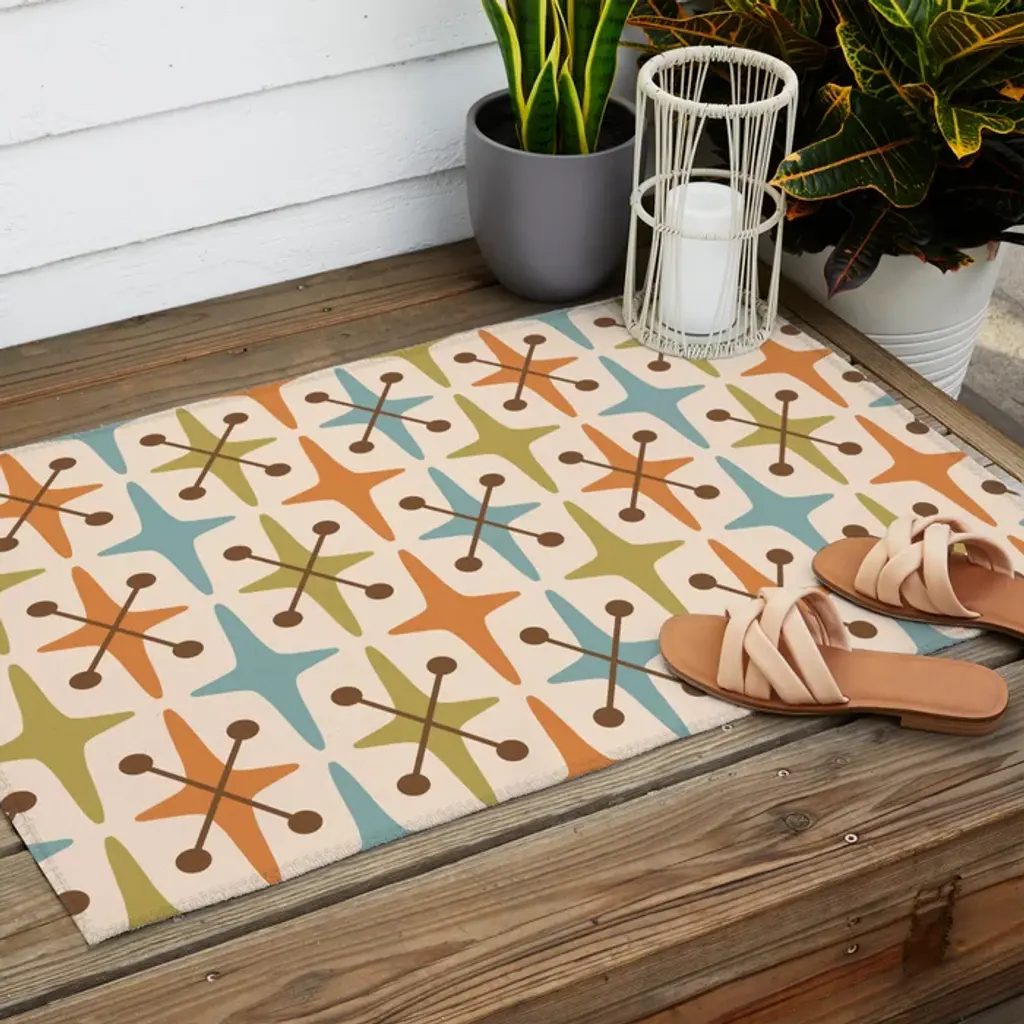 Mid Century Modern Googie Star Pattern Mid Mod Outdoor Rug