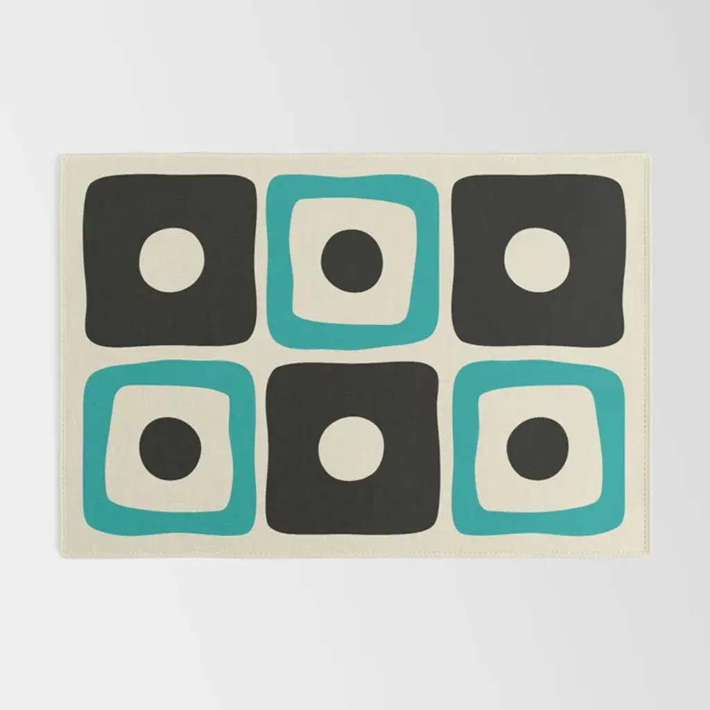 Mid Century Modern Square Dot Pattern 593 Black And Turquoise Rug