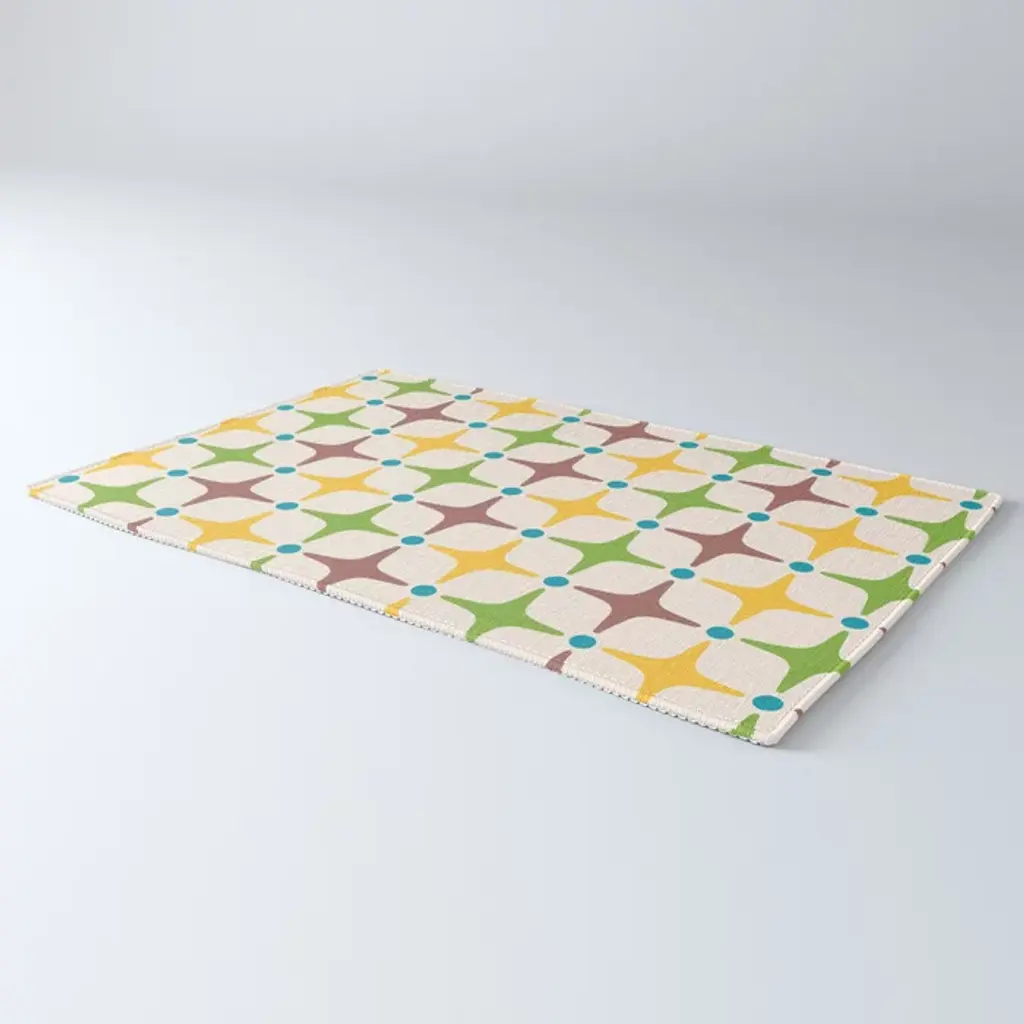 Mid Century Modern Star Pattern 214 Brown Yellow Turquoise Chartreuse Rug