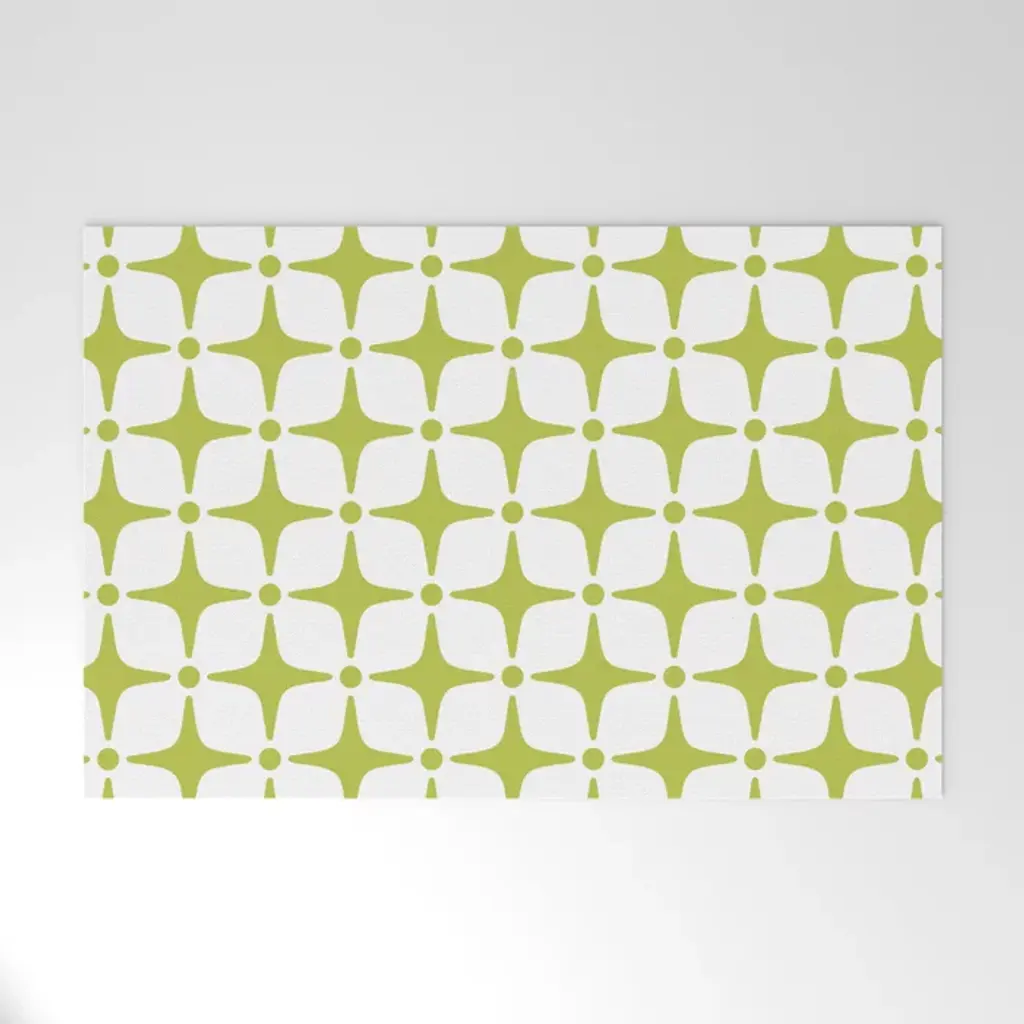 Mid Century Modern Star Pattern Chartreuse Green 2 Outdoor Rug