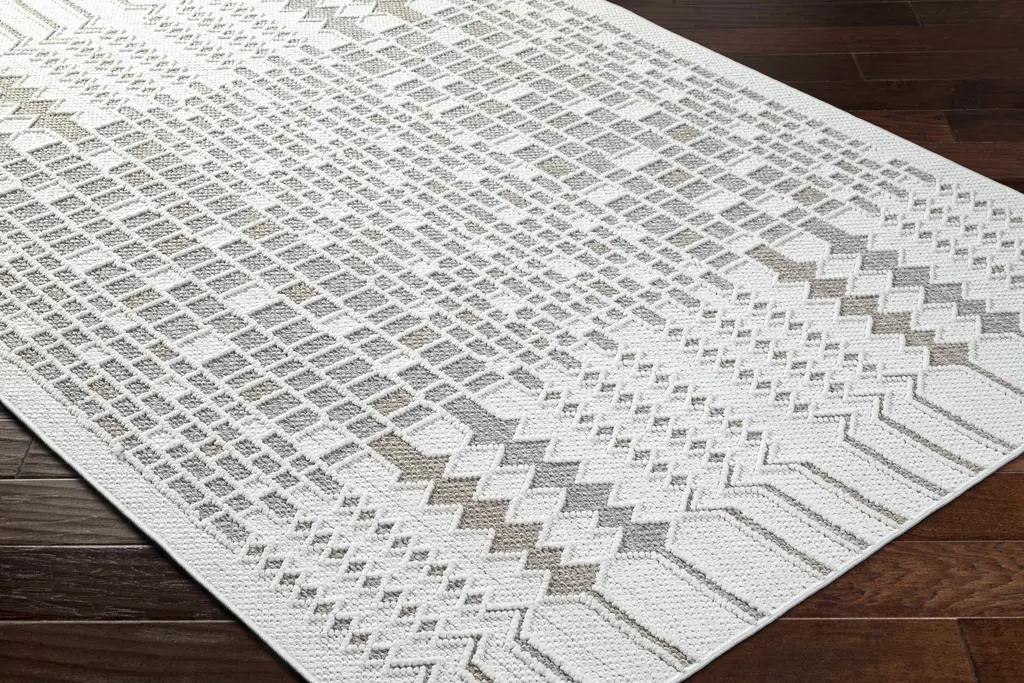 Collection: Mikey Colors: Ivory, Beige, LightGray Construction: Machine Woven Material: 100% Polyester Pile: No Pile Styles: Contemporary Made In: Turkey Thickness: 0.31" Price Range: $$$$$ (Most Affordable)