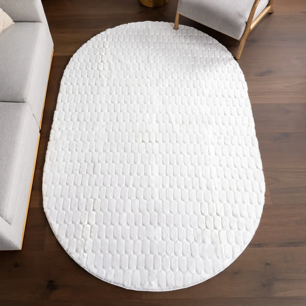 Milazia Honeycomb Plush Cloud Washable Rug | White - 5' X 7' 6"