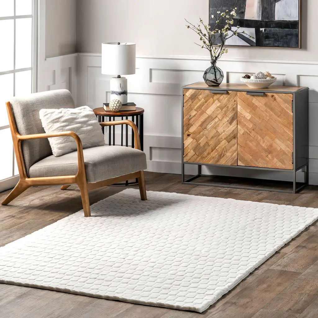 Milazia Honeycomb Plush Cloud Washable Rug | White - 7' 6" X 9' 6"