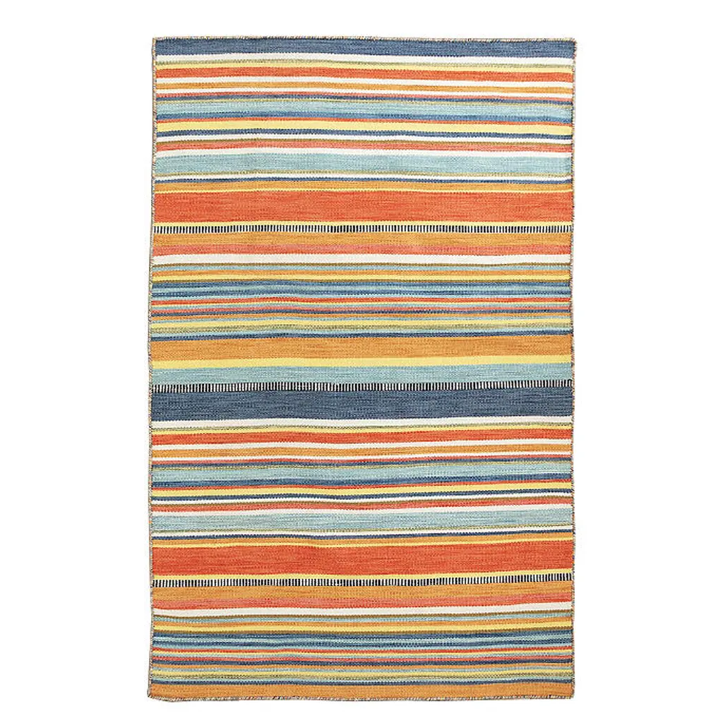 The classic stripes on the Millie Rug add visual interest and definition to indoor and outdoor spaces. Handmade and reversible, this low-profile, weather-resistant rug is UV stabilized to prevent fading and durable enough for high-traffic areas like patios, kitchens, entryways and more. Main color: blue; accent colors: seafoam, white, beige and navy Main color: multi; accent colors: coral, yellow, navy, green, blue 100% polyester; latex backing Handcrafted Weather resistant with UV protection to prevent fading For indoor or outdoor use Finished edge Vacuum regularly; hose clean as needed and allow to air dry Rug pad recommended (sold separately) Imported At Frontgate, our primary focus is quality. We guarantee that every product we sell will stand up to the supreme test – our customers' satisfaction. To learn more about our policies, visit our Shipping & Processing, Returns & Exchanges and Warranty & Price Guarantee pages.