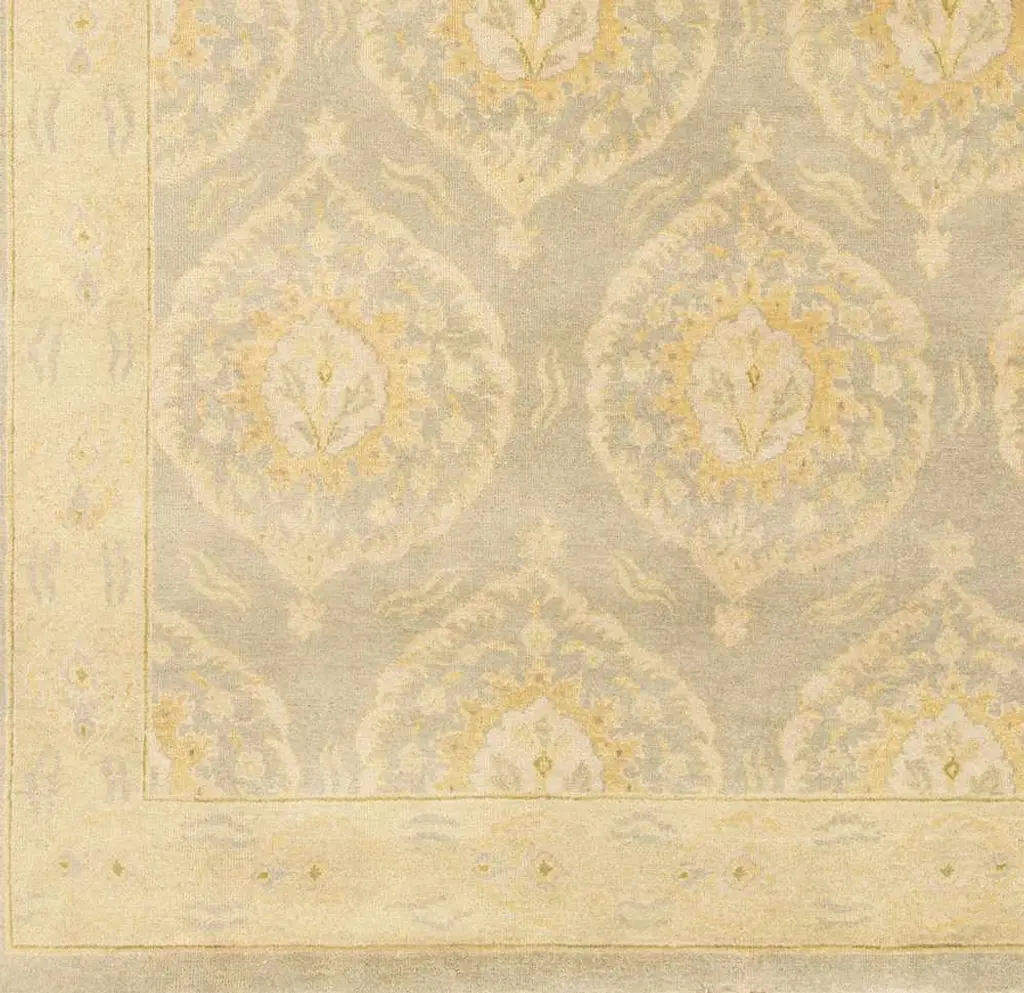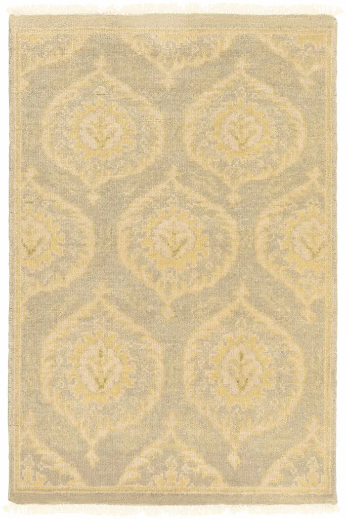 Collection: Milly Colors: Taupe, Olive, Mustard Construction: Hand Knotted Pile: Medium Pile Pile Height: 0.4" Made In: India Fringe Length: 0.8" Price Range: $$$$$ (Premium)