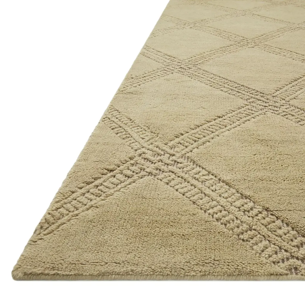 Banded detailing not only gives this hand-knotted rug its Moroccan-influenced diamond motif but also accentuates the plushness of the pile, which features hand-spun wool. A rug pad is recommended to prevent slipping and extend the life of the rug.