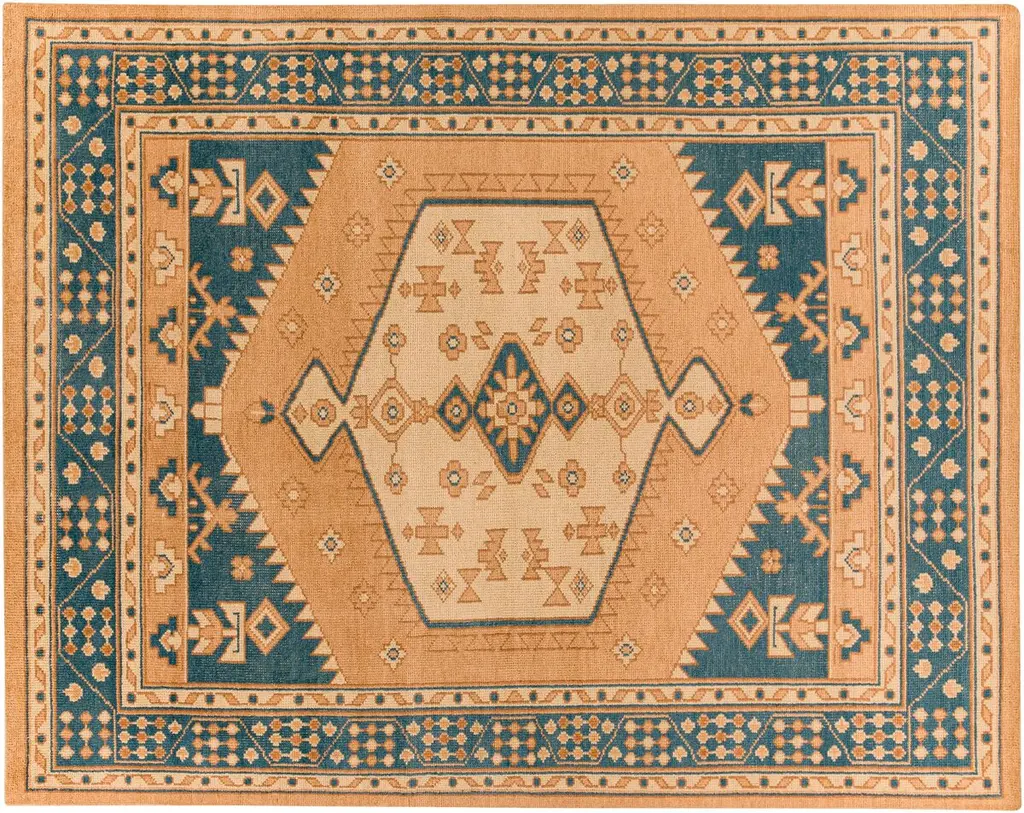 A rich palette and classic motifs give this hand-knotted wool rug timeless allure. A rug pad is recommended to prevent slipping and extend the life of the rug.