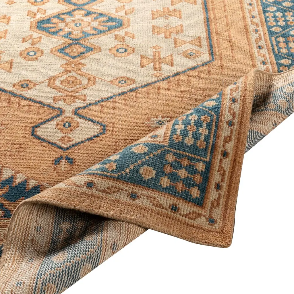 A rich palette and classic motifs give this hand-knotted wool rug timeless allure. A rug pad is recommended to prevent slipping and extend the life of the rug.
