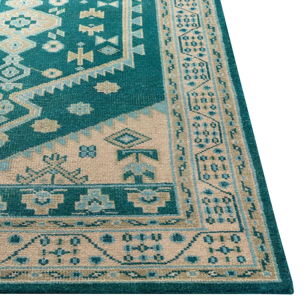 A rich palette and classic motifs give this hand-knotted wool rug timeless allure. A rug pad is recommended to prevent slipping and extend the life of the rug.