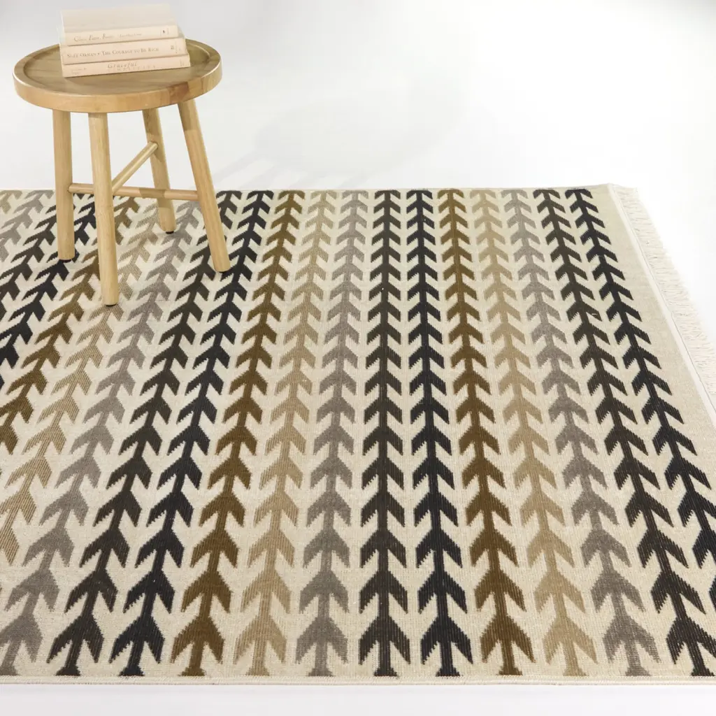 Hand-woven by skilled craftsmen on traditional flat looms, Mini Flag offers 2 variations on its motif of pennant shapes—a multi-hued version with a larger pattern or a smaller-scale alternative in in a single contrasting tone. Fashioned in 100% wool yarns that are selected to be extra soft and lustrous, Asplund’s kilim also offers a range of sizes and colorways.