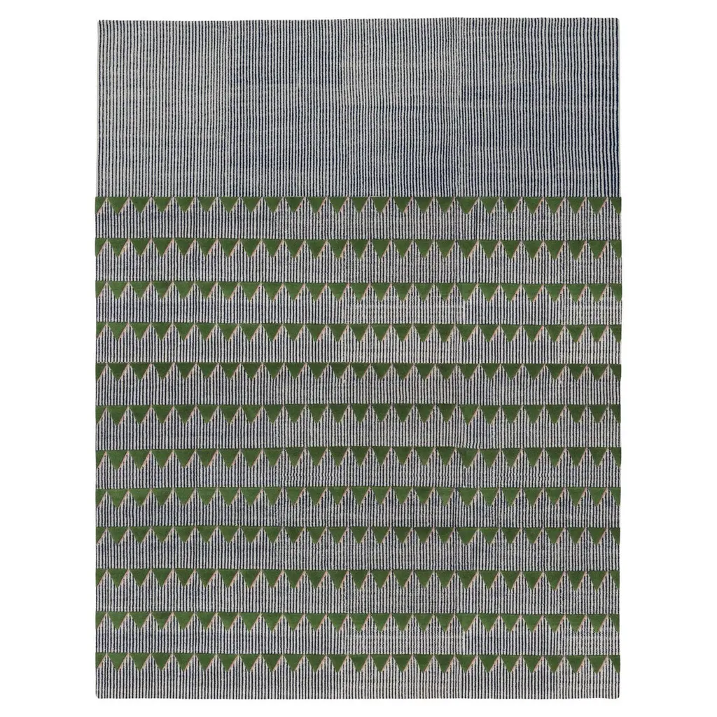 Hand-woven by skilled craftsmen on traditional flat looms, Mini Flag offers 2 variations on its motif of pennant shapes—a multi-hued version with a larger pattern or a smaller-scale alternative in in a single contrasting tone. Fashioned in 100% wool yarns that are selected to be extra soft and lustrous, Asplund’s kilim also offers a range of sizes and colorways.
