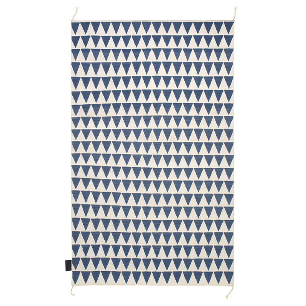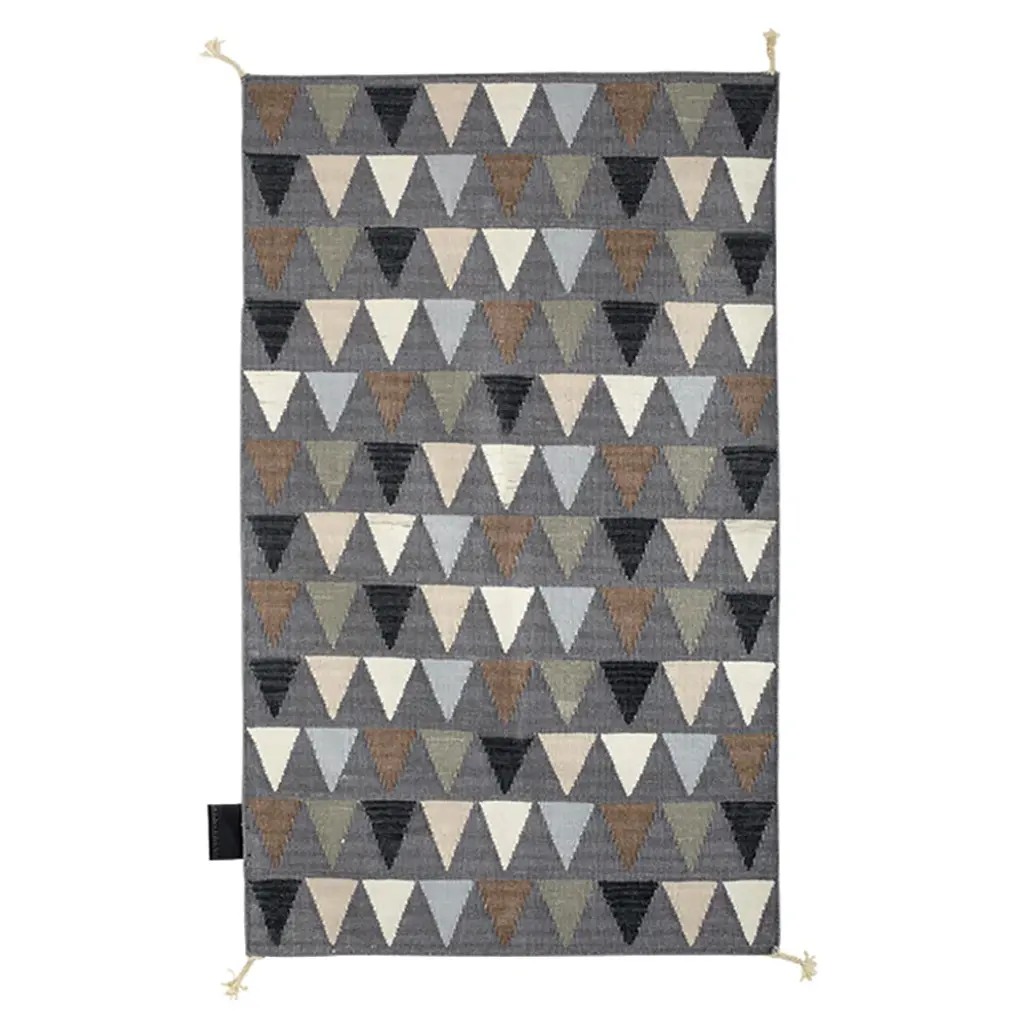 Hand-woven by skilled craftsmen on traditional flat looms, Mini Flag offers 2 variations on its motif of pennant shapes—a multi-hued version with a larger pattern or a smaller-scale alternative in in a single contrasting tone. Fashioned in 100% wool yarns that are selected to be extra soft and lustrous, Asplund’s kilim also offers a range of sizes and colorways.