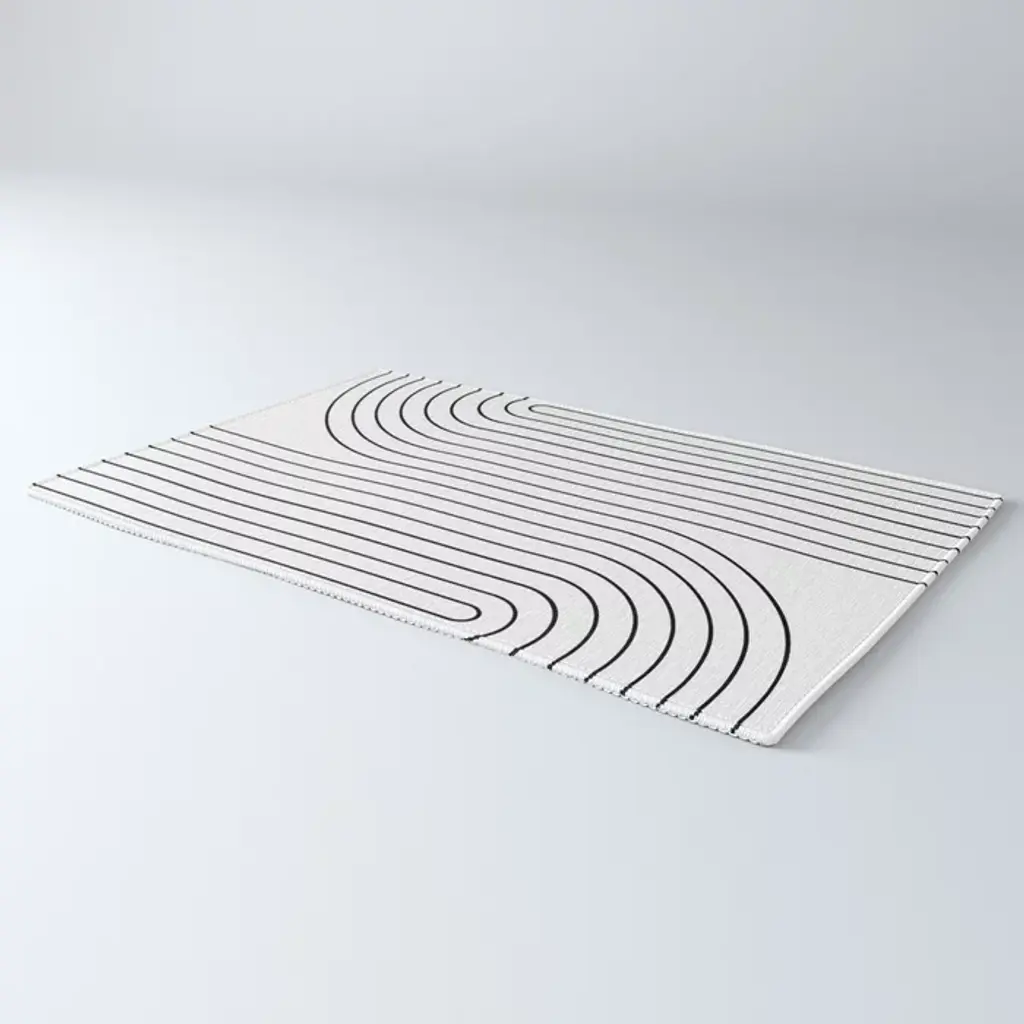 Minimal Line Curvature I Black And White Mid Century Modern Arch Abstract Rug
