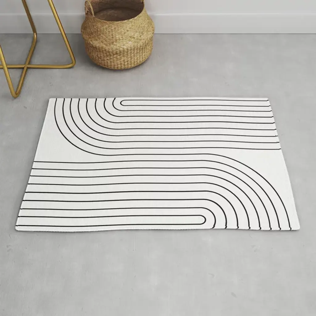 Minimal Line Curvature Ii Black And White Mid Century Modern Arch Abstract Outdoor Rug