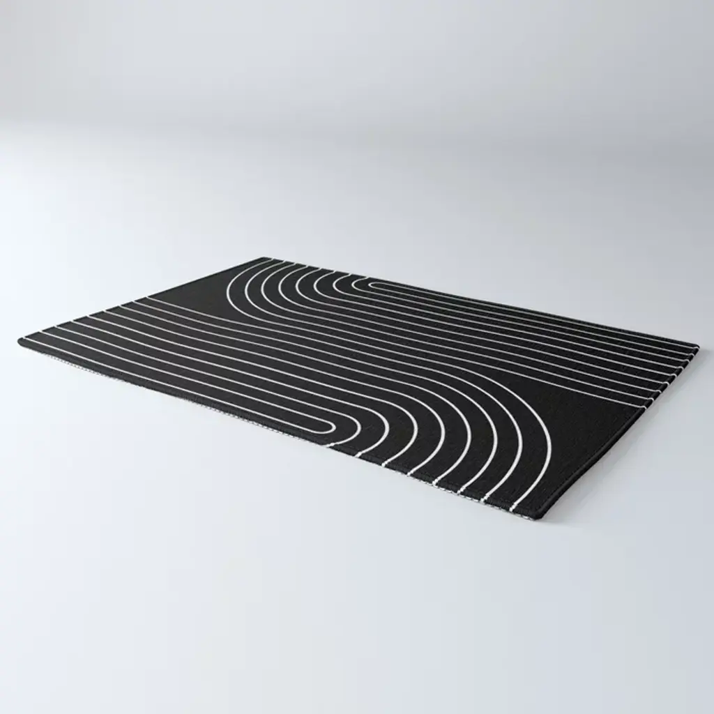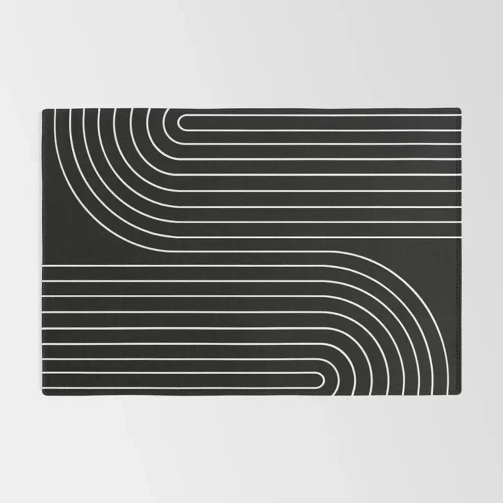Minimal Line Curvature Ii Black And White Mid Century Modern Arch Abstract Rug