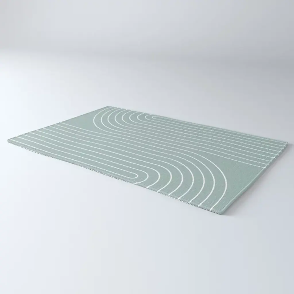 Minimal Line Curvature Vii Sage Green Mid Century Modern Arch Abstract Rug