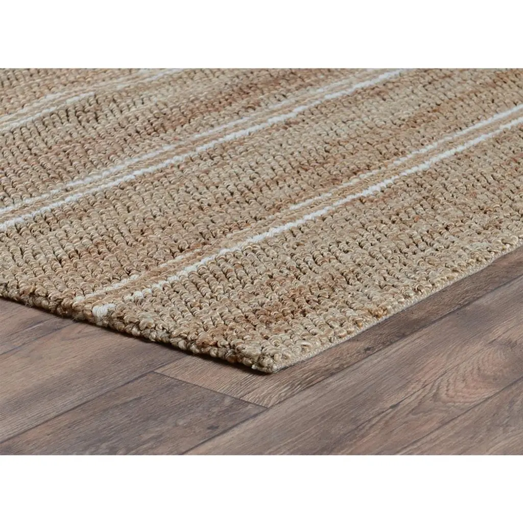 Mira Modern Classic White Striped Patterned Jute Rug - 9'x12'