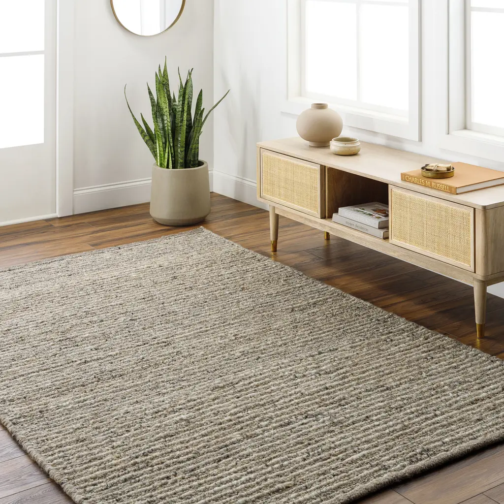 The simplistic yet compelling rugs from the Miramar Collection effortlessly serve as the exemplar representation of modern decor. The meticulously woven construction of these pieces boasts durability and will provide natural charm into your decor space. Made with Wool in India, and has No Pile. Spot Clean Only, One Year Limited Warranty.