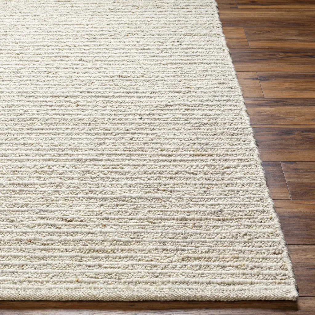 The simplistic yet compelling rugs from the Miramar Collection effortlessly serve as the exemplar representation of modern decor. The meticulously woven construction of these pieces boasts durability and will provide natural charm into your decor space. Made with Wool in India, and has No Pile. Spot Clean Only, One Year Limited Warranty.