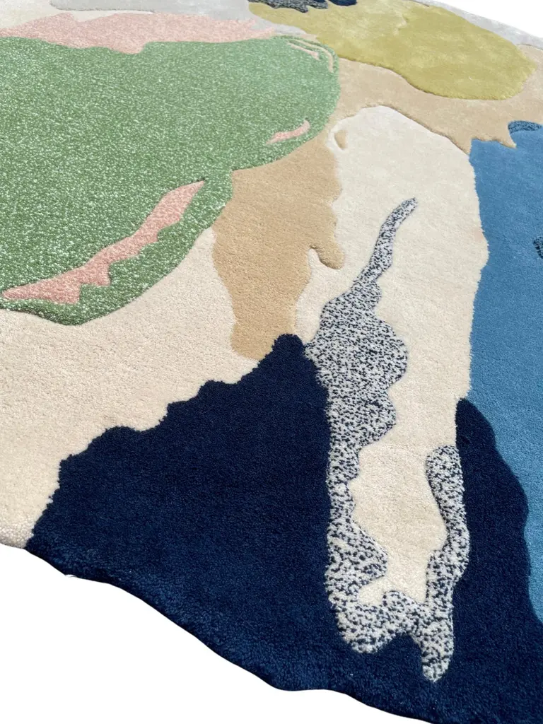 'Mis-Shapes'Contemporary irregular abstract shape hand-tufted wool rugA combination of neatness and abstraction. A fluid patterns and shades of primary colors from vibrant to pastel, just enough to make your room stand out, yet still homey and comfortable.Original designed by Rannisa Soraya from RAG HomeHand-tufted with mixed Methods and Colours. It can be customised in size, and composition upon request.