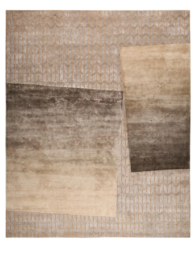 Miscella Hand Knotted Modern Wool & Silk Rug In Ash And Natural Colours By Hands