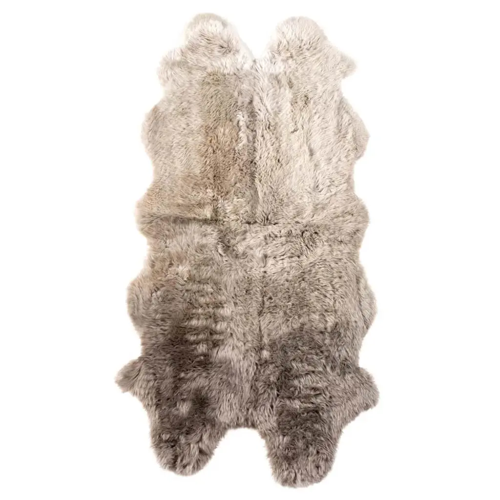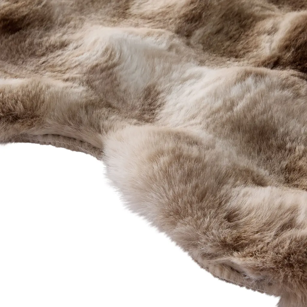 Knitted plush to the touch in mottled mocha and cream, our 2x3 faux-fur pelt isn't simply beautiful and affordable - it's also machine washable! An animal-friendly area rug with a faux-suede backing, it combines the luxurious softness of a fur throw with a machine-washable fabrication. Certified free of harmful chemicals, this imitation-fur pelt is a cozy treat for bare feet in a bedroom, entryway, or in front of the hearth.