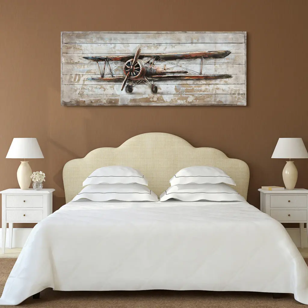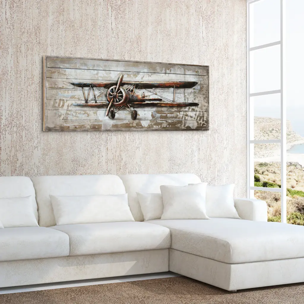 Empire Art Direct and their exclusive artist Primo are proud to present this three-dimensional, iron, mixed media wall sculpture. These individual unique originals are hand painted and signed works of art that are renown for Primo''s skills of manipulating iron into a textured work of art with extraordinary depth and skill. This 3D sculpture of a classic airplane can be presented outdoors if it is varnished every year, as it will take on a patina characteristic that is inherent in its presentation.